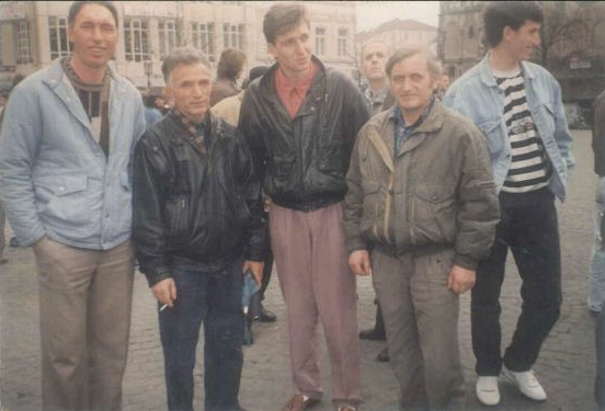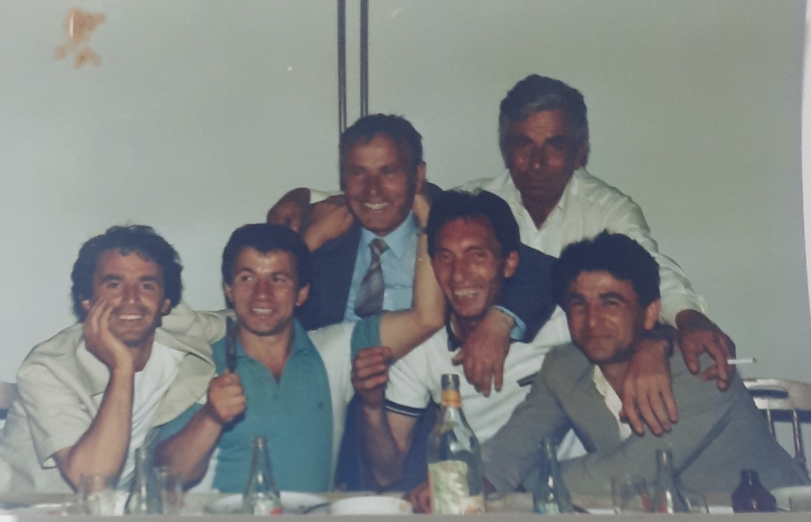 Biseda relaksohet me të qeshura teksa tregon se si për muaj me radhë e kishte mashtruar vëllanë e ndjerë, Hasanin, me të cilin ndante banesën, se mishi që po blinte nuk ishte i derrit. Edhe Hasani, vëlla i babës, kishte dalë ilegalisht në Gjermani pas dëbimit nga vendi i punës në kombinatin e drurit në Ferizaj në vitin 1990. Xha Hasanit, më vonë iu bashkua edhe djali i madh Muharremi, i cili nuk i ishte përgjigjur thirrjes jugosllave për shërbim ushtarak pas shpërthimit të luftës në Bosnjë e Hercegovinë më 1992. Si pjesë e Serbisë, kosovarët thirreshin të lajmëroheshin në kazermat serbe në Kosovë dhe t’i bashkangjiten frontit të luftës në Bosnjë.