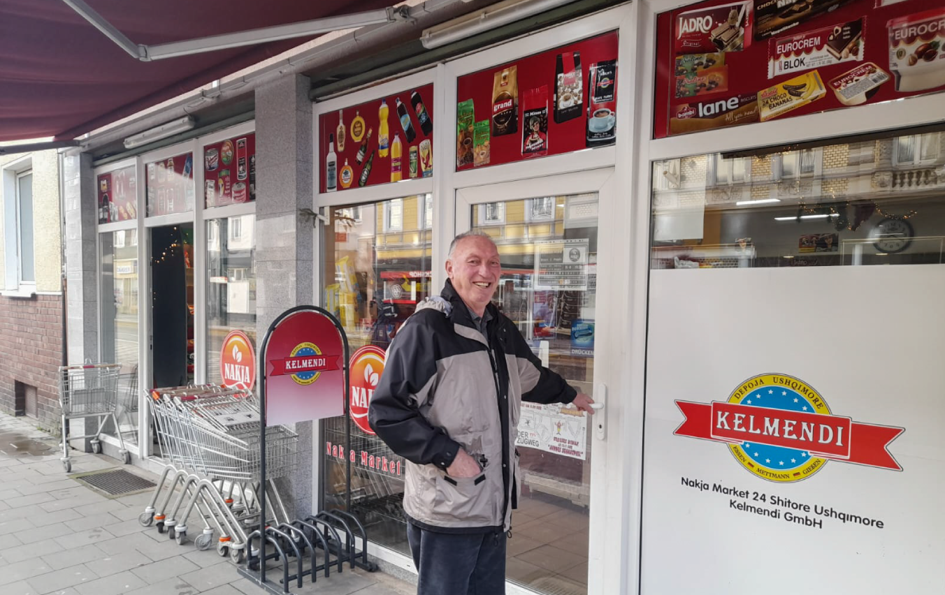 Këtë e shoh edhe në autobusin e trafikut urban. Ulur para meje, një burrë i thinjur, për nja dhjetë minuta, ua hedh një sy titujve, por pastaj nxjerr nga xhepi fletoren e kimikun dhe shënon artikujt me zbritje, të reklamuar në gazetë. Me tramvaj udhëtojmë drejt periferisë për të parë një dyqan “shqiptarësh”. Një dyqan me pronar shqiptar, që për nga mënyra e vendosjes së produkteve në rafte, më kujton dyqanin e dajallarëve në Talinoc të Jerlive, por që nuk e ka atë tezgën e gjatë prapa së cilës rrinte shitësi. Në rrugën “Rat”, ky dyqan, është adresa më e njohur për shqiptarët.