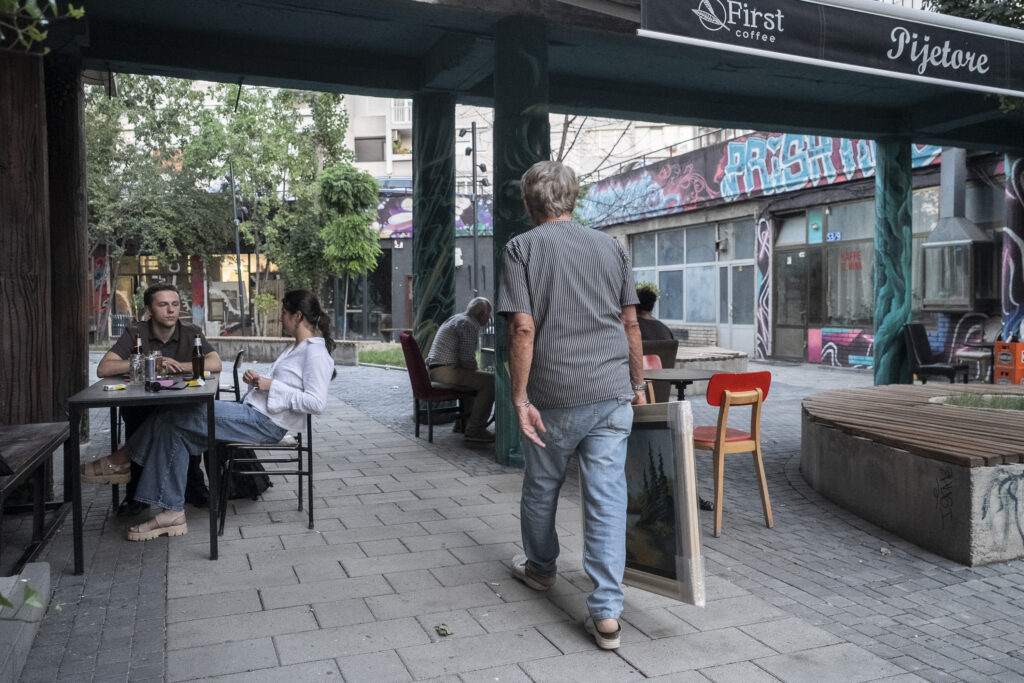 “Unë njejtë e kam qiranë, tash e 11 vjet”, tha ai. “Këtu i kam mysafirtë krejt deputetë, doktora, profesora. Ja kanë nisë m’u mbledh shok mas shoki. Kur kom dal këtu me lokal në vitin 2011, krejt më kanë thanë ‘ski me mujtë me ba sen në këtë mahallë’. Po unë e disha çka do bahet, se unë qit pune e boj që 45 vjet”.