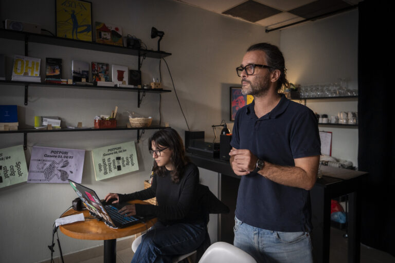 “Ndonjëherë e nij dikënd tu thanë, kjo rrugë ka potencial mu bo si kafet e rakisë... im like, shpresoj që jo." thotë Artrit Bytyçi, themelues i StoryLab. Në foto, bashkë me të, Vanesa Orana, arkitekte dhe bashkëpunëtore në SL.