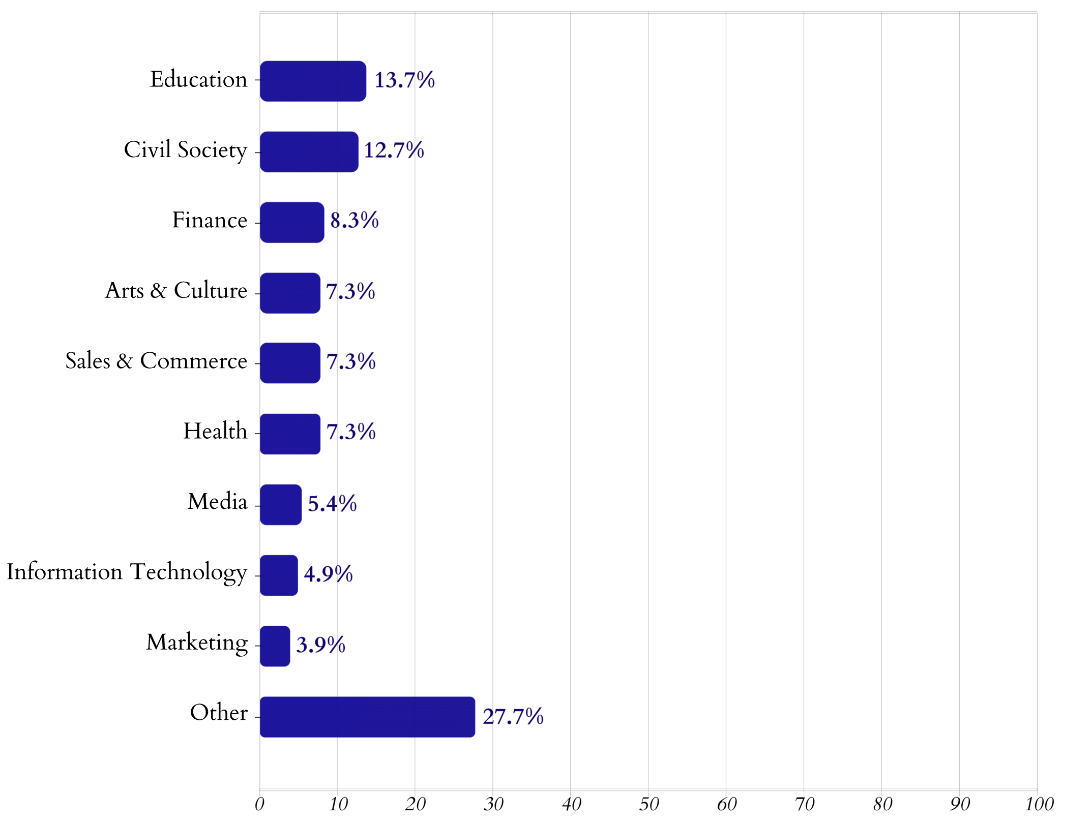 Meanwhile, about 21.1% of respondents were over the age of 55. The high representation of this age group, although generally less inclined to adopt new technologies compared to younger groups, can be explained by the fact that they often occupy senior positions or specialized roles in sectors such as education, finance or civil society, where GenAI can be useful for tasks like reporting, data analysis or translation. Additionally, the availability of free versions of GenAI platforms, such as ChatGPT, may have lowered the barriers to adoption for this age group.