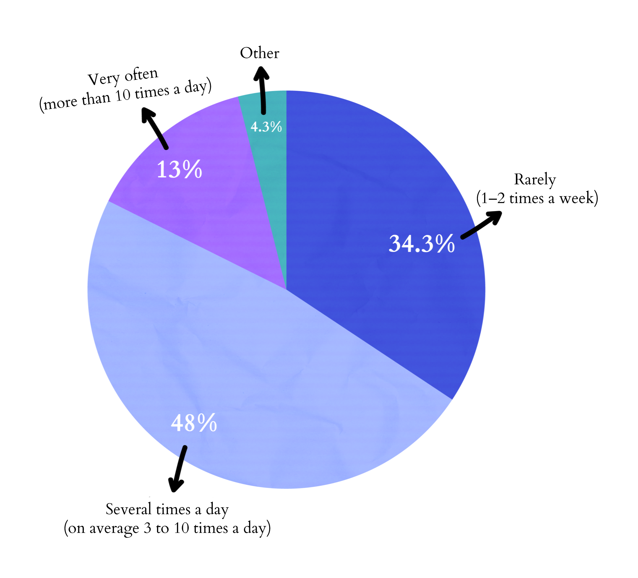 Almost half of respondents — 48% — use GenAI platforms for work several times a day, ranging from three to 10 times. However, a significant portion — 34.3% — reported using it only once or twice a week.