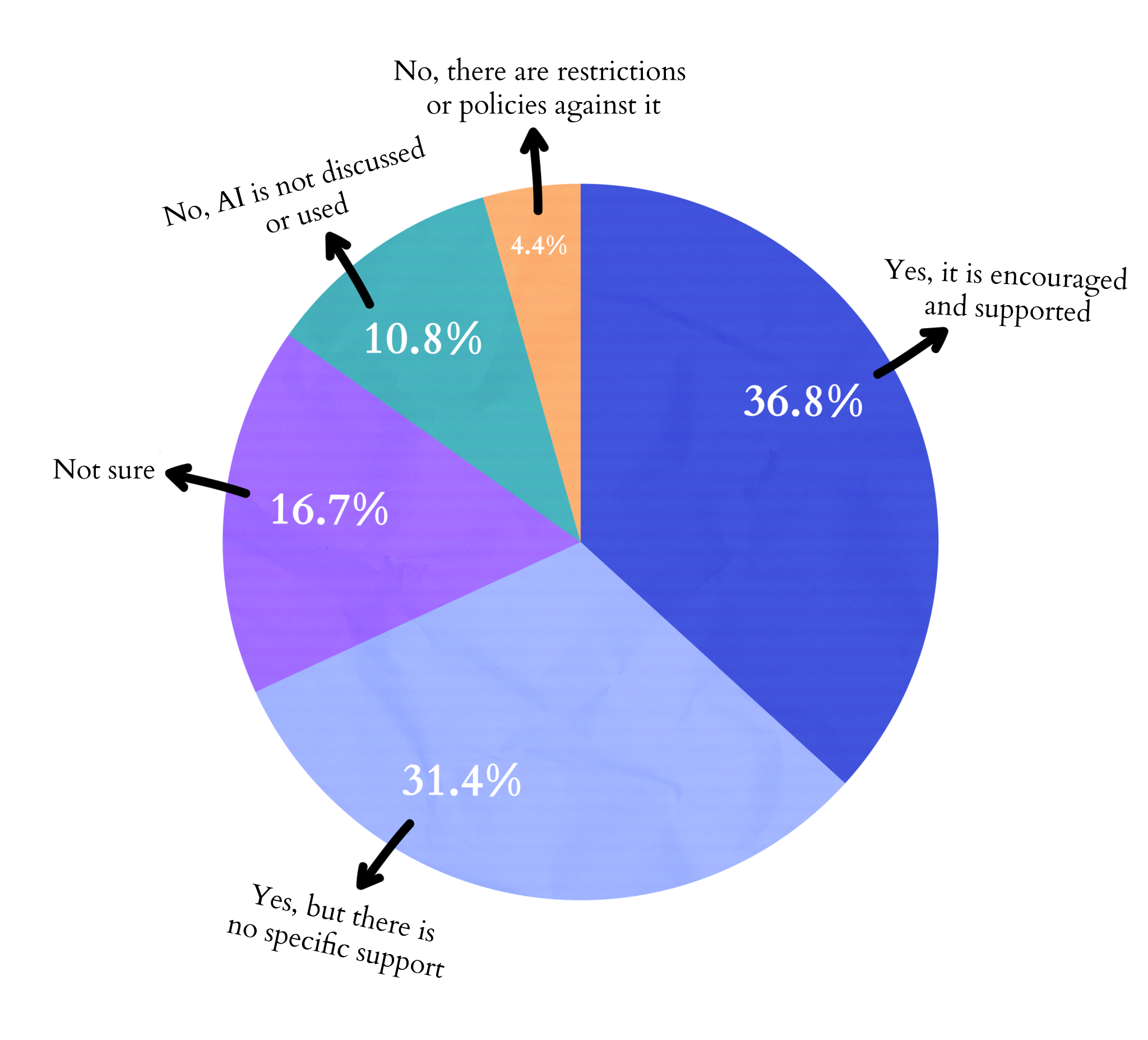 Although GenAI is widely integrated into the work process in Kosovo, only 36.3% of respondents said that their workplace encourages and supports its use. 31.4% said there is no official support or clear policy, while 10.8% reported that their workplace has restrictions or policies against the use of GenAI. This indicates that GenAI is largely being adopted on an individual basis rather than systematically by workplaces.