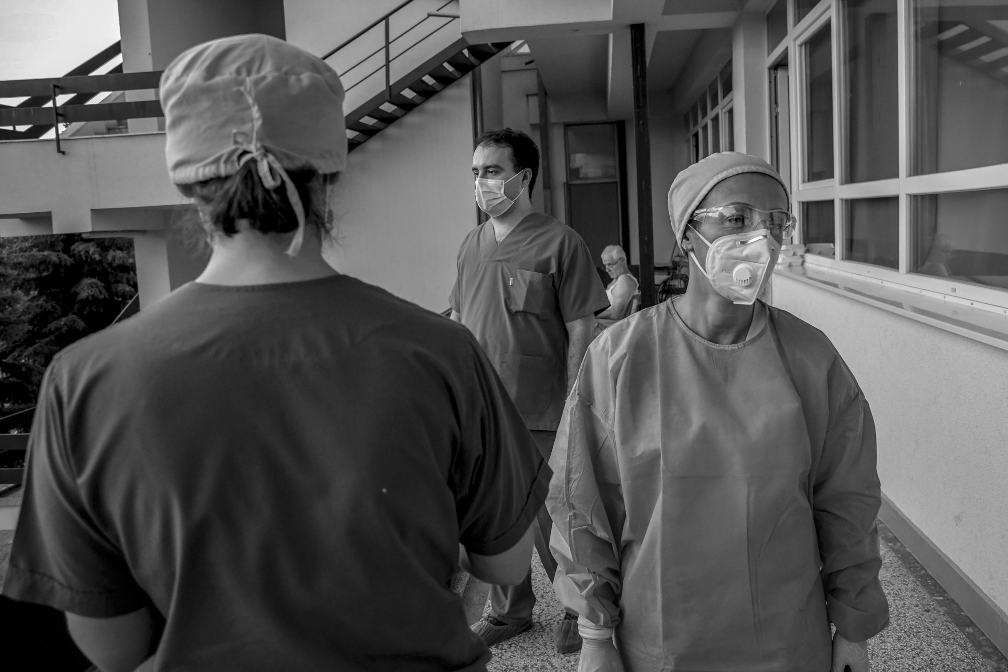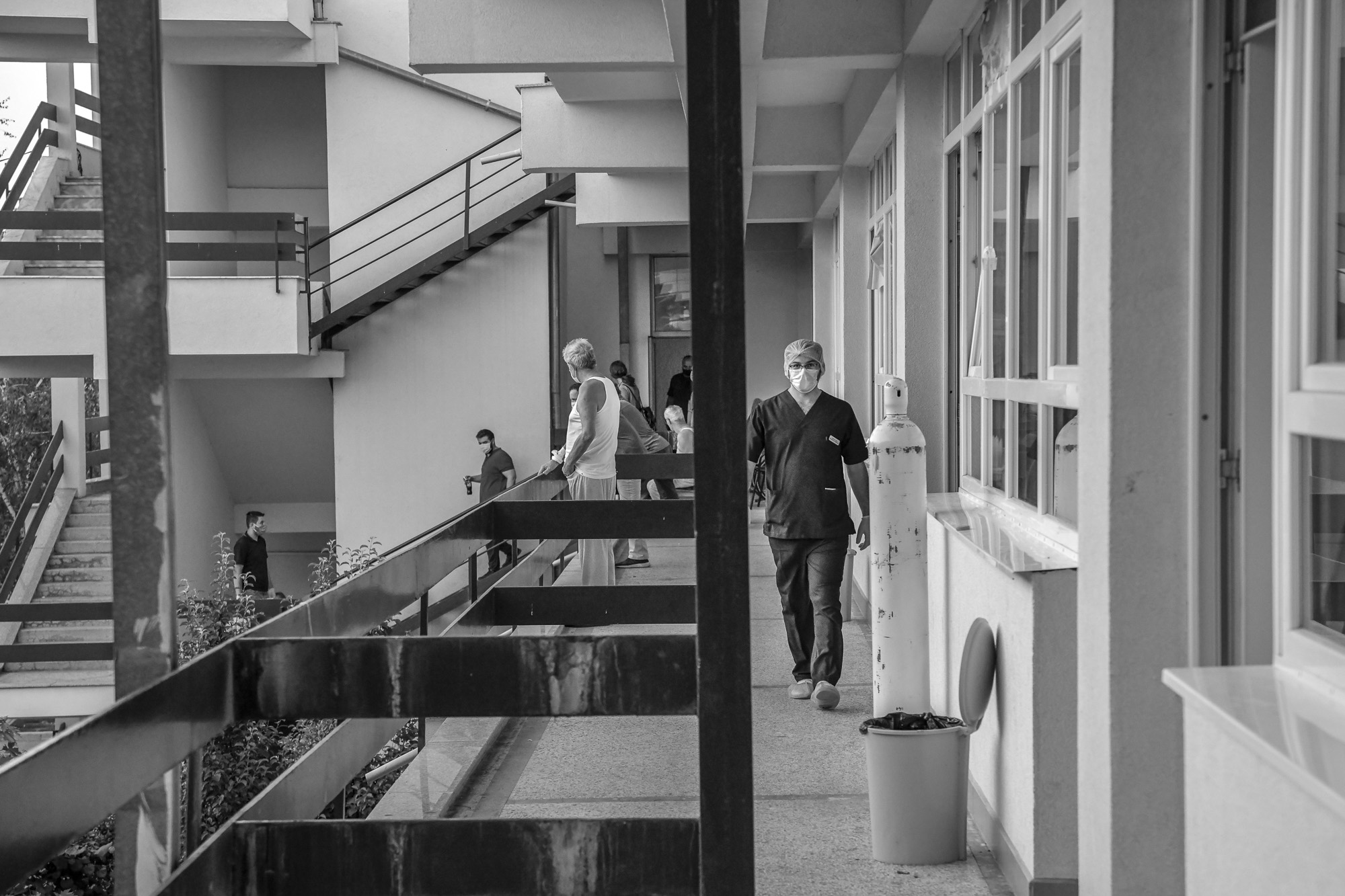 Medical staff at QKUK’s Infectious Diseases Clinic use the outdoor corridors to move between rooms to reduce the risk of infection.
