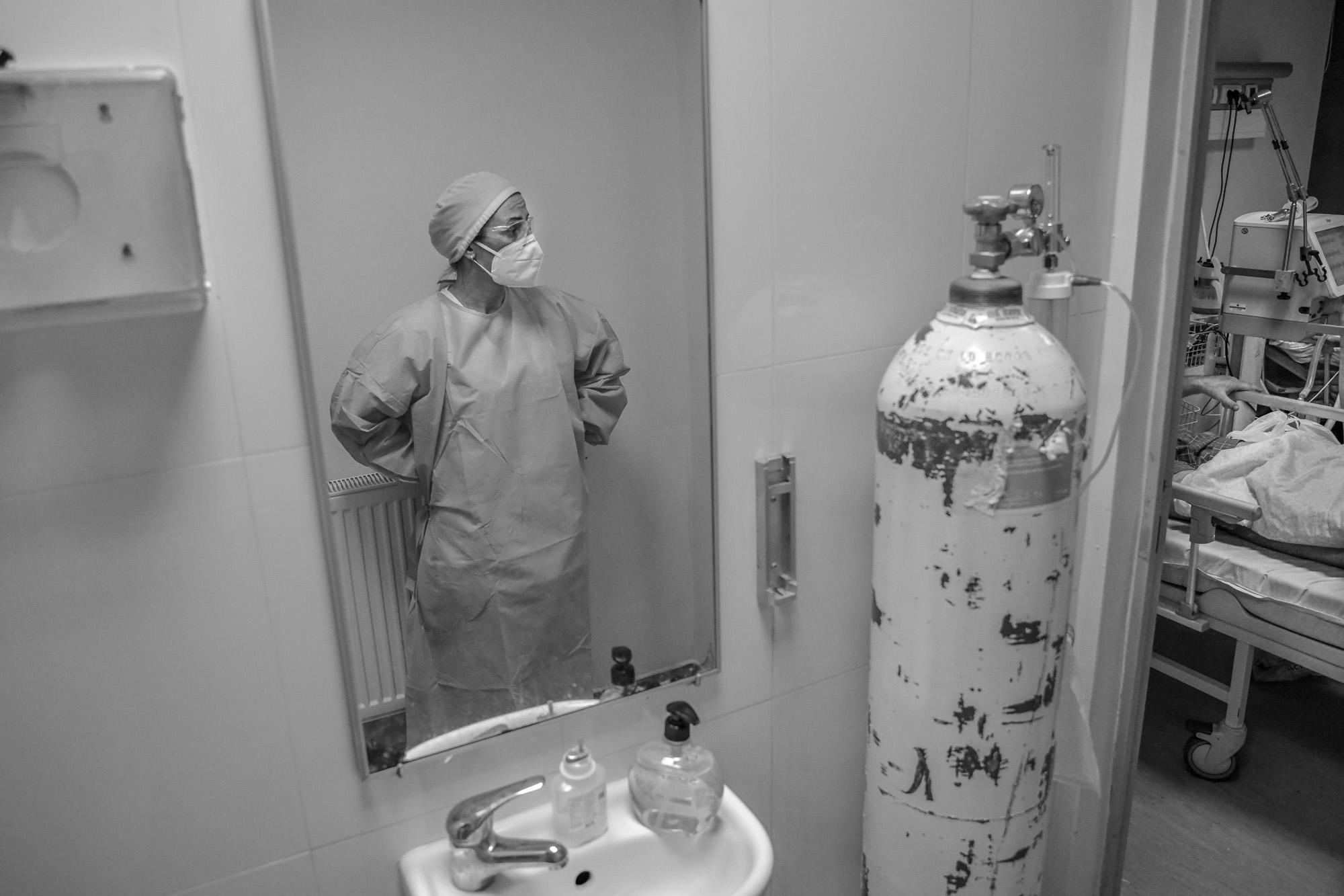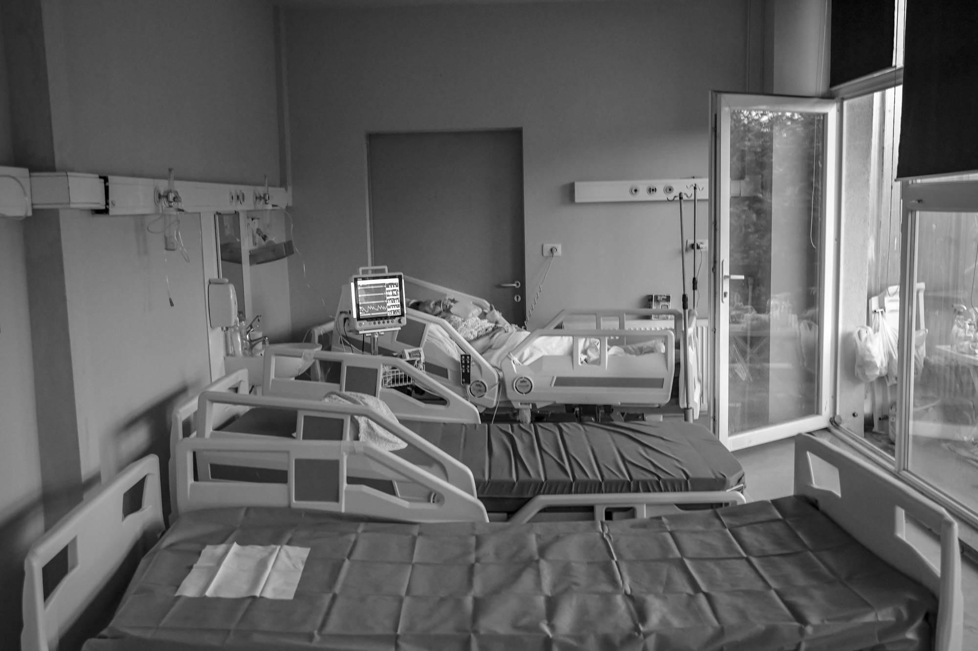 In every room you hear the sound of machines beeping, measuring heartbeats and blood pressure, as well as oxygen bottles for each patient that’s panting as though they’ve been running or are exhausted.