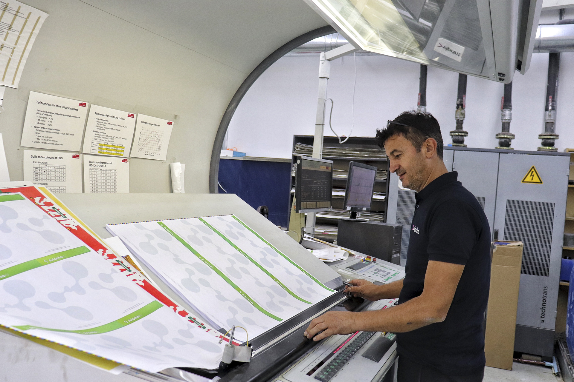 As Ture walks through the company, workers gather around him. “Could you come and have a look at this? It seems to me that the colors the machine is printing are too warm,” asked one, and “Do we dare to print it like this?” asked another. Without hesitation, Ture, recognized by his colleagues as a driving force in the workplace, approaches the printer and checks the color.
