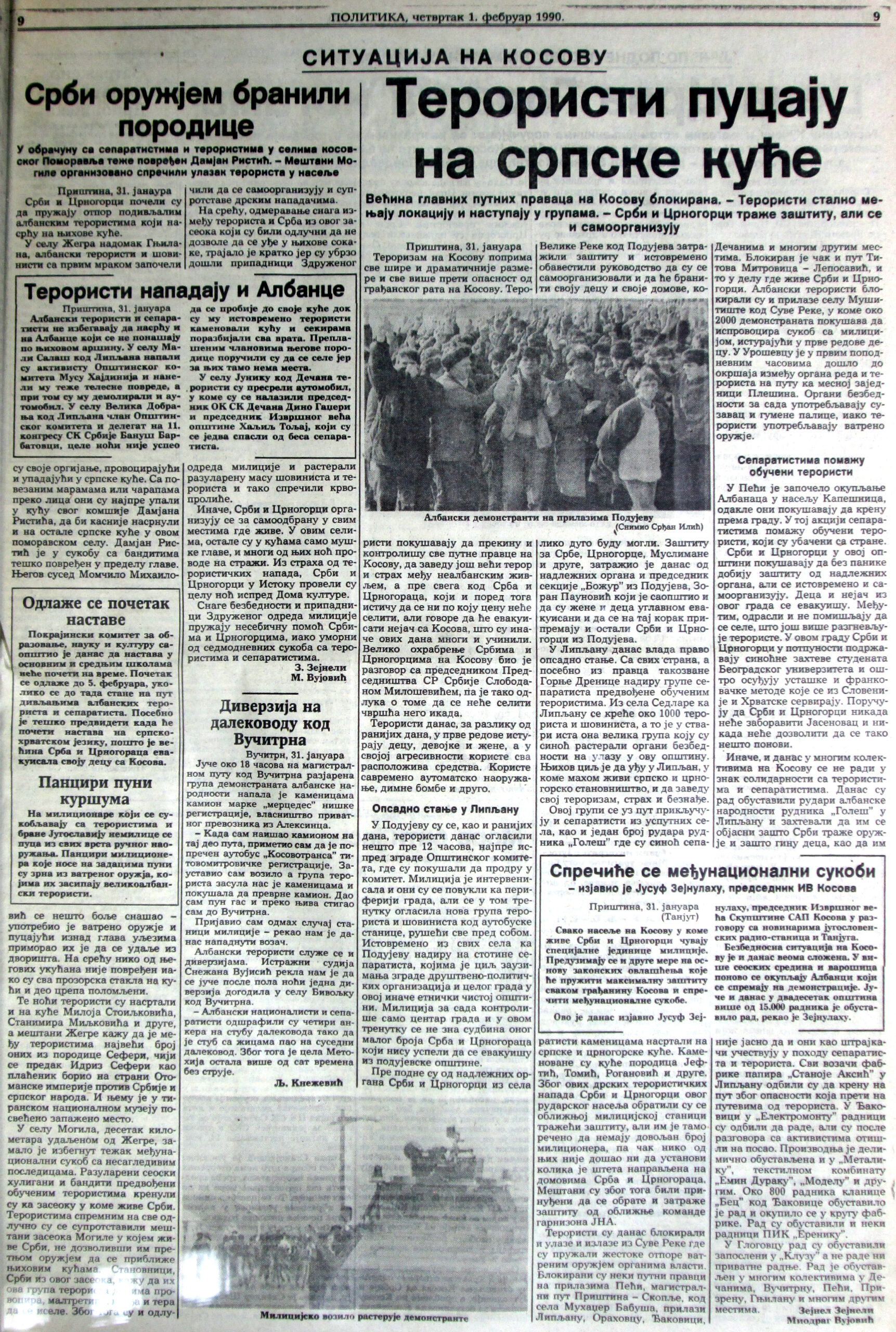 Despite brutal police repression and multiple casualties, the protests continued for days. In the Belgrade press, protesters were labeled as terrorists, while the police killings of demonstrators were falsely attributed to blood feuds among them. At least 30 people were killed, hundreds were injured and over 1,000 were imprisoned. One particularly impactful event was the killing of 16-year-old Ylfete Humolli on February 1, 1990, in Lupç i Poshtëm, near Podujeva. In several places around Kosovo, including Malisheva, police armored vehicles fired automatic rounds at shops, the city courthouse, medical clinics, elementary schools and even private homes.