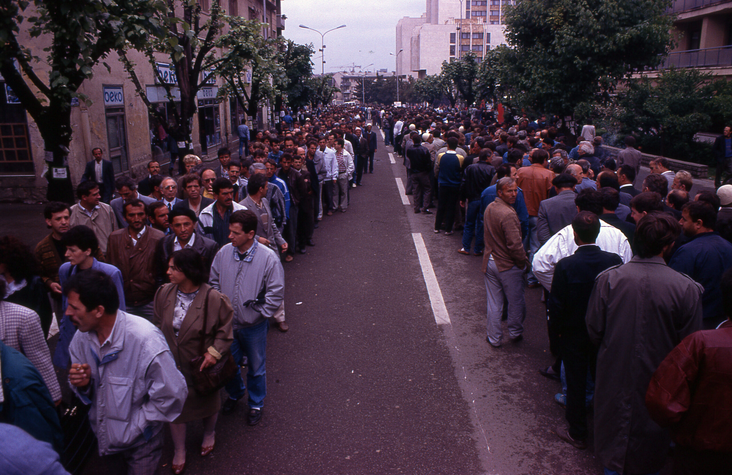 The Union of Independent Trade Unions of Kosovo (BSPK), formed just a few months earlier, had called on workers to stage a one-day general strike as a symbolic act of protest against the illegal dismissal of over 15,000 Albanian workers. The strike was also meant to send a clear message to the regime of Slobodan Milošević, then the president of Serbia, that without the labor of Albanian workers, despite their marginalization in society, many aspects of life in Kosovo would be paralyzed. Craftsmen, traders, farmers and nearly the entire population joined the strike.