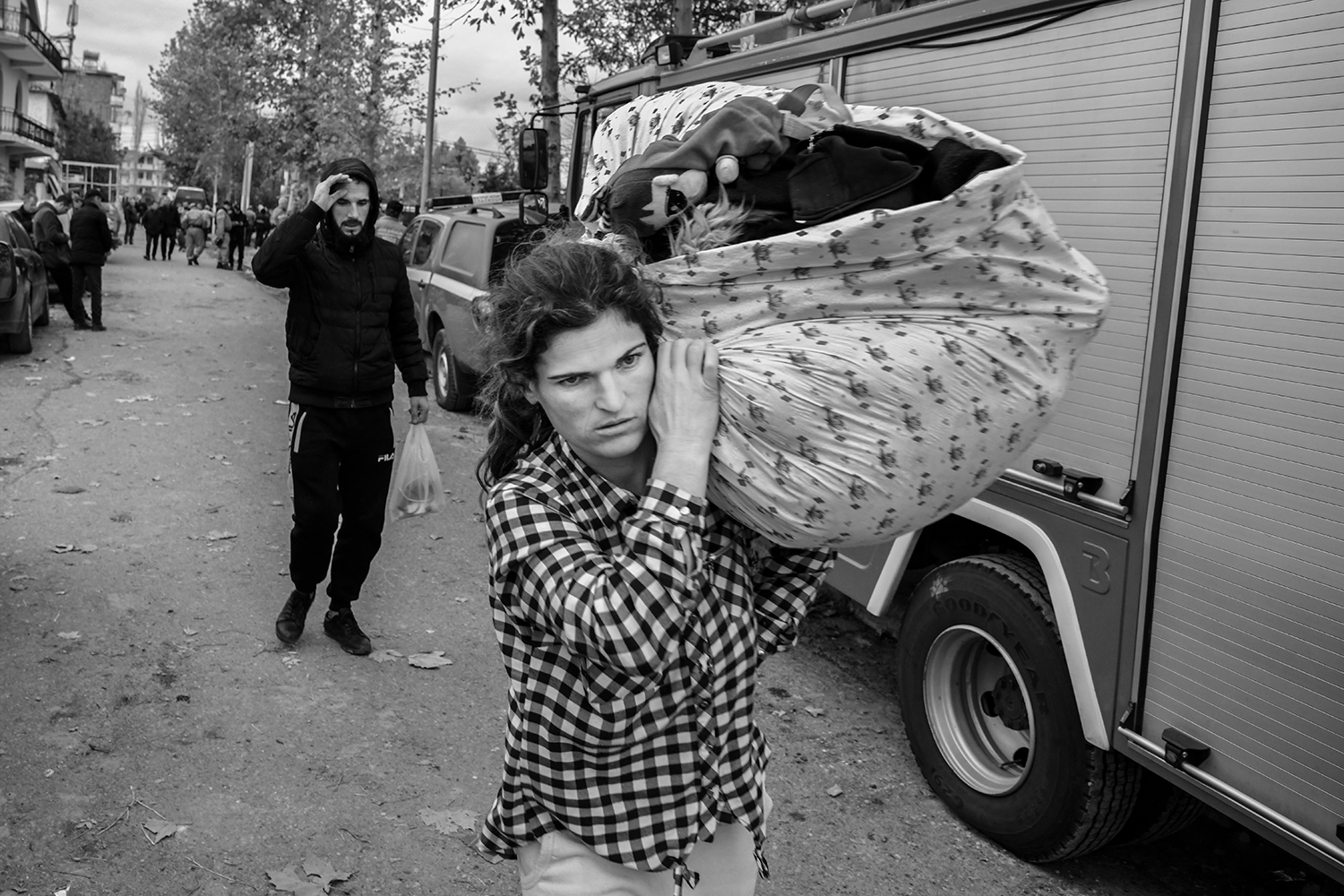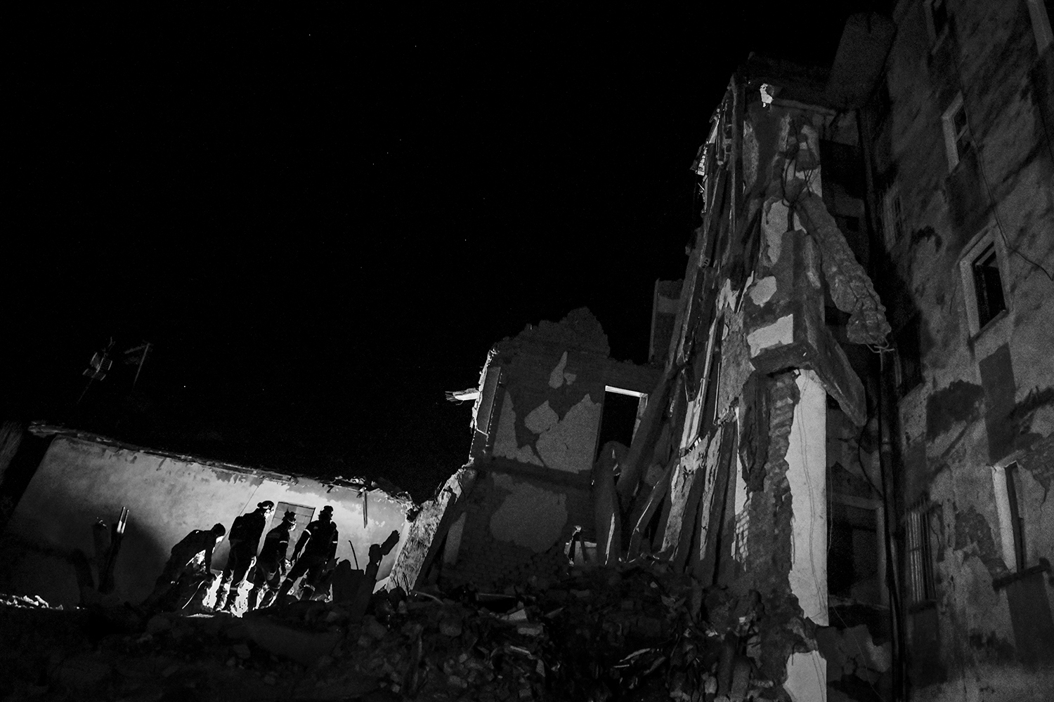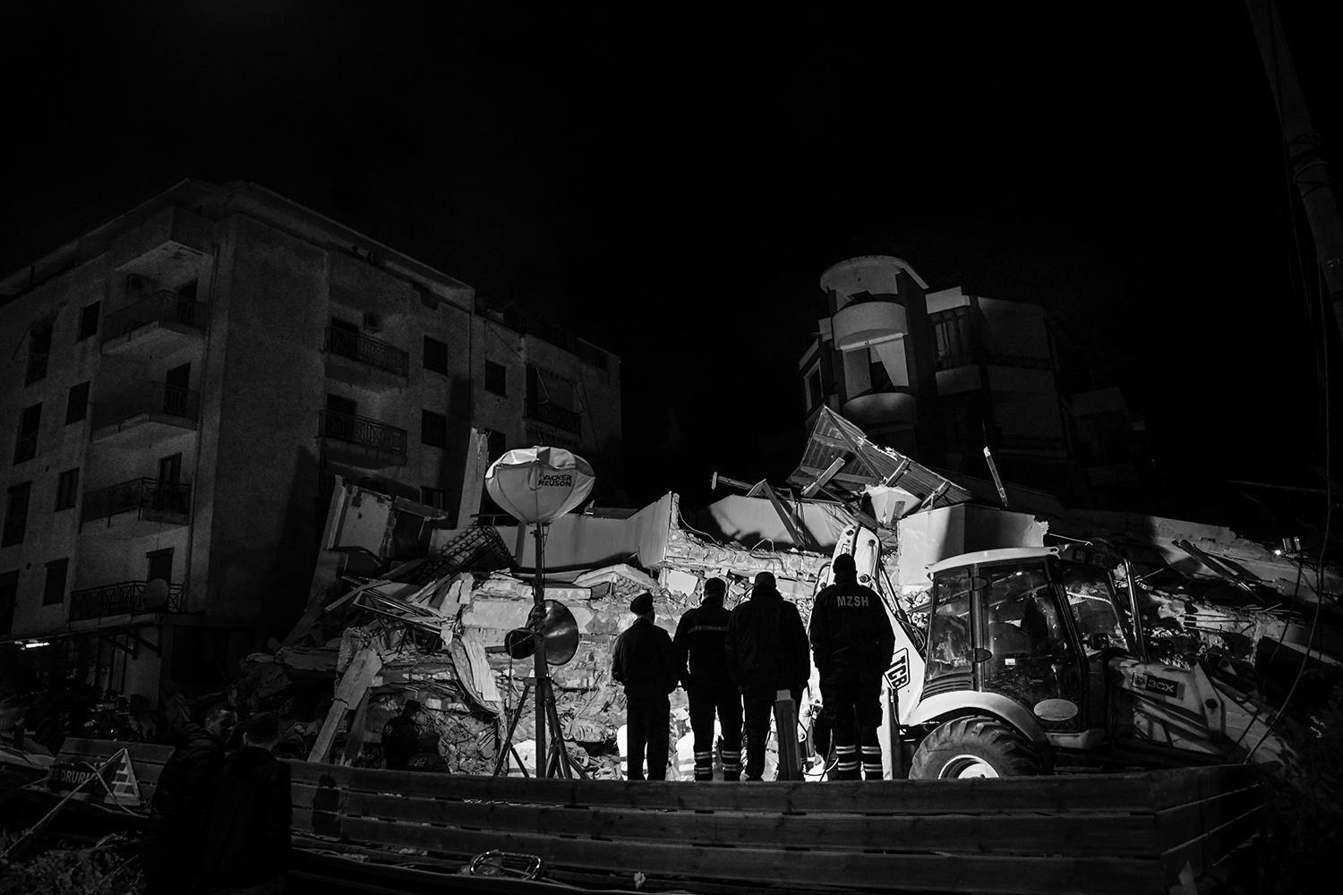 We meet the other photographers at a local bar, very near to the main disaster sites in Durrës. They’re filing their latest batch of images. All around them, the bar is full of locals, afraid to sleep in their flats.