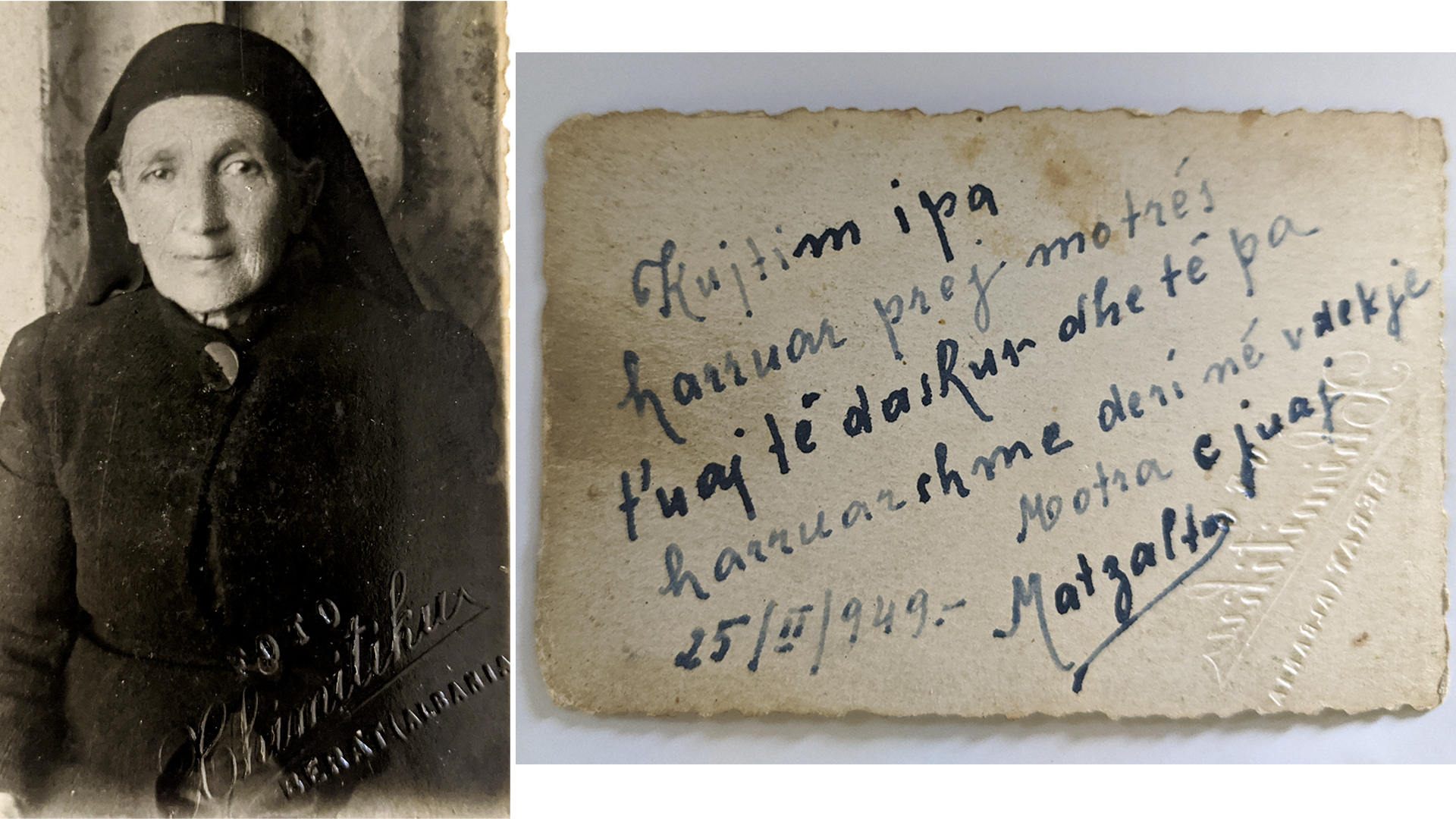 Fotografia datonte nga 1949-ta. Vula e thatë tregonte se ajo ishte marrë në studion e Lilo Xhimitikut, i cili në ato vite kishte një dyqan fotografie në Berat, qytetin e Shqipërisë, 190 kilometra në veri të Filatit.