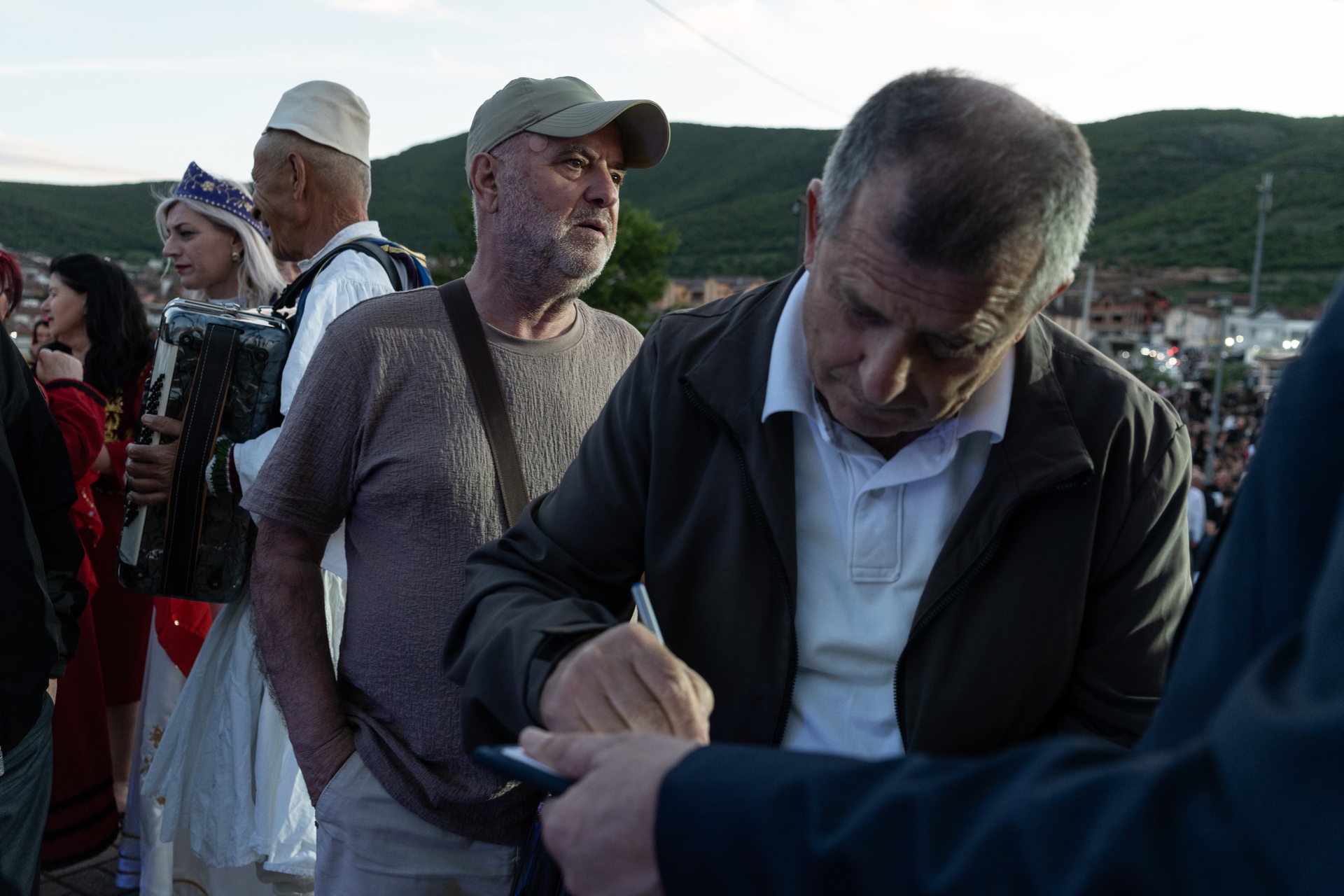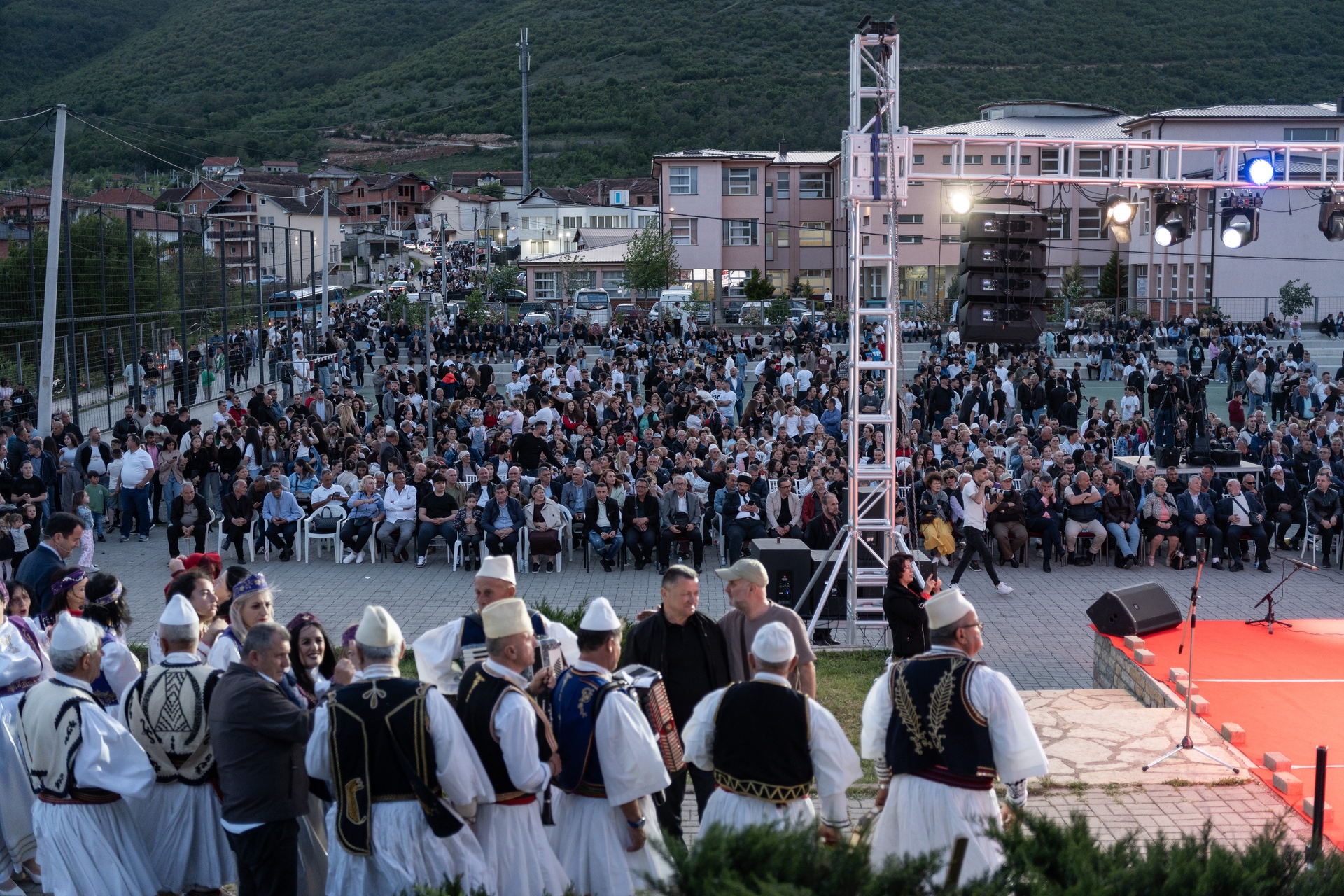 Pak para orës gjashtë në mbrëmje, shpeshtohen ecejaket e grave dhe burrave me veshje kombëtare nga shkolla përballë Shtëpisë së Kulturës “Reshat Çoçaj”. Haziz Hodaj, drejtor i ansamblit, e Dilaver Kryeziu, drejtor artistik, nuk zinin vend. Sa i shihje në një sallë brenda shtëpisë së kulturës, sa jashtë duke folur me ata që kujdeseshin për zërim, sa te ndonjë ansambël a grup — sivjet ishin 18 sosh.