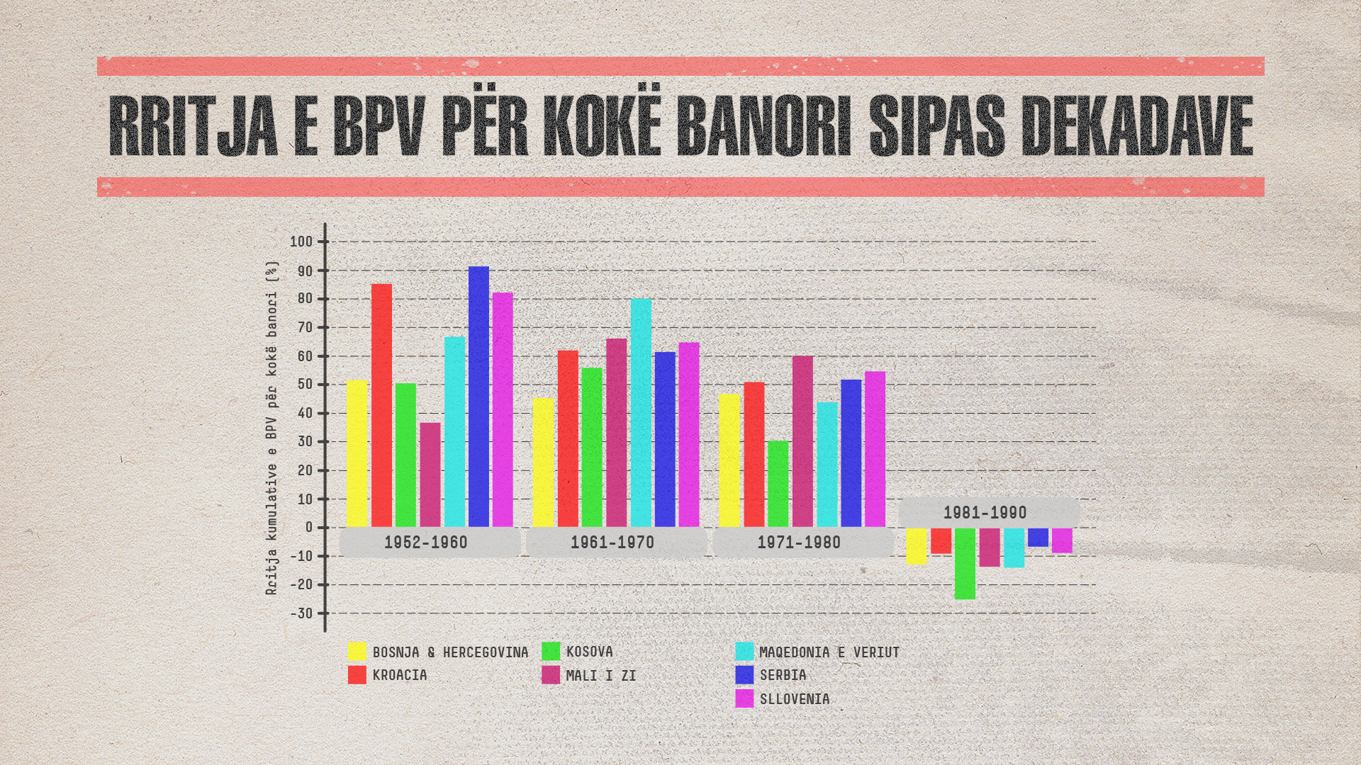 Ndonëse vitet e ‘60-a dhe ‘70-a shpesh konsiderohen si periudhë e zhvillimit të konsiderueshëm, rritja e të ardhurave për kokë banori në Kosovë tregon tjetërçka.
