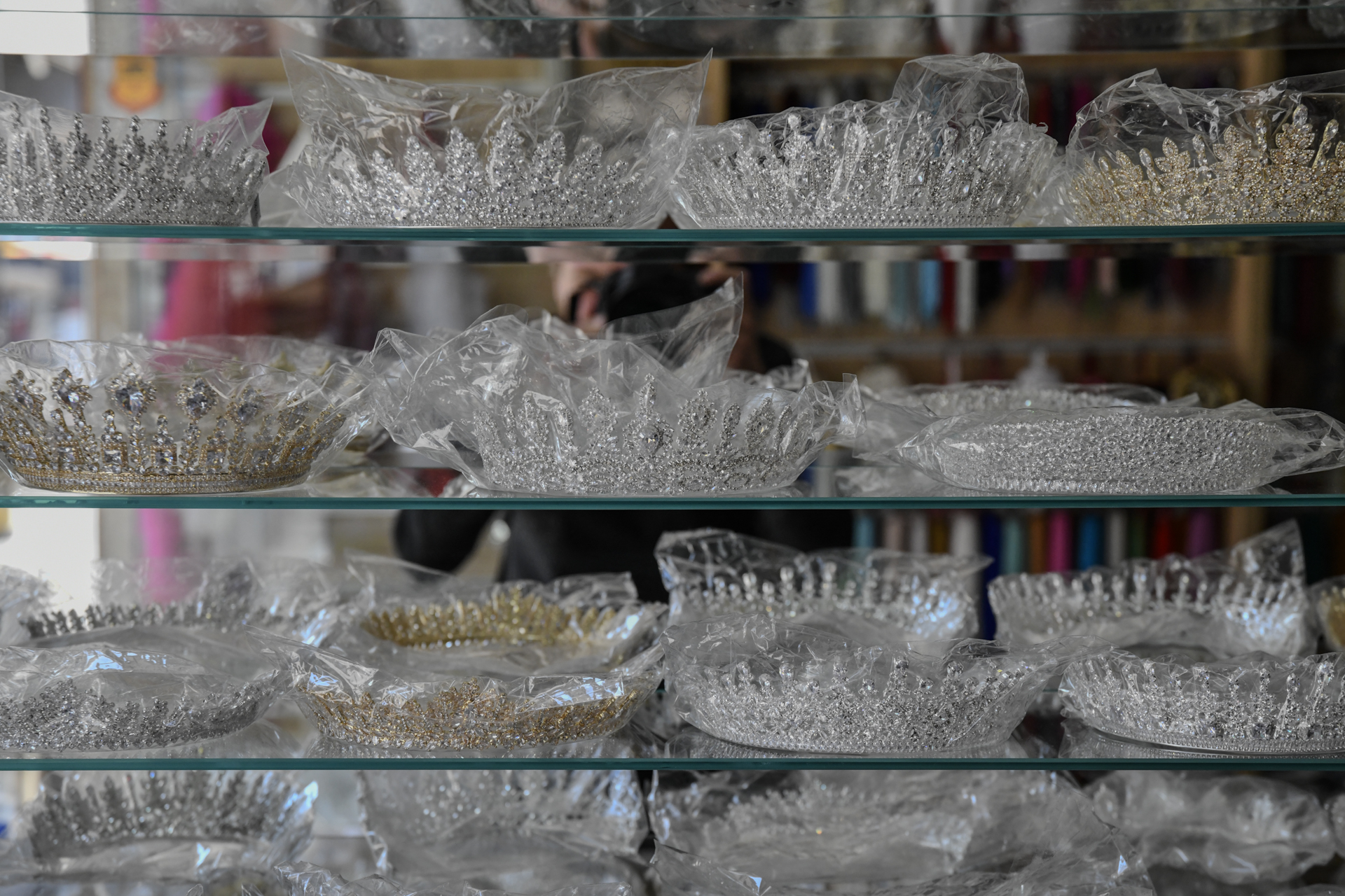 “Mbi 1,000 produkte nëse i numërojnë veç e veç janë”, thotë Erkan Cukiqi, pronari i këtij lokali të rruazave, teksa brenda hyn një grua. Ajo provon një kurorë që zakonisht vihet në në ditën e martesës, teksa plot tjera i renditen para syve.