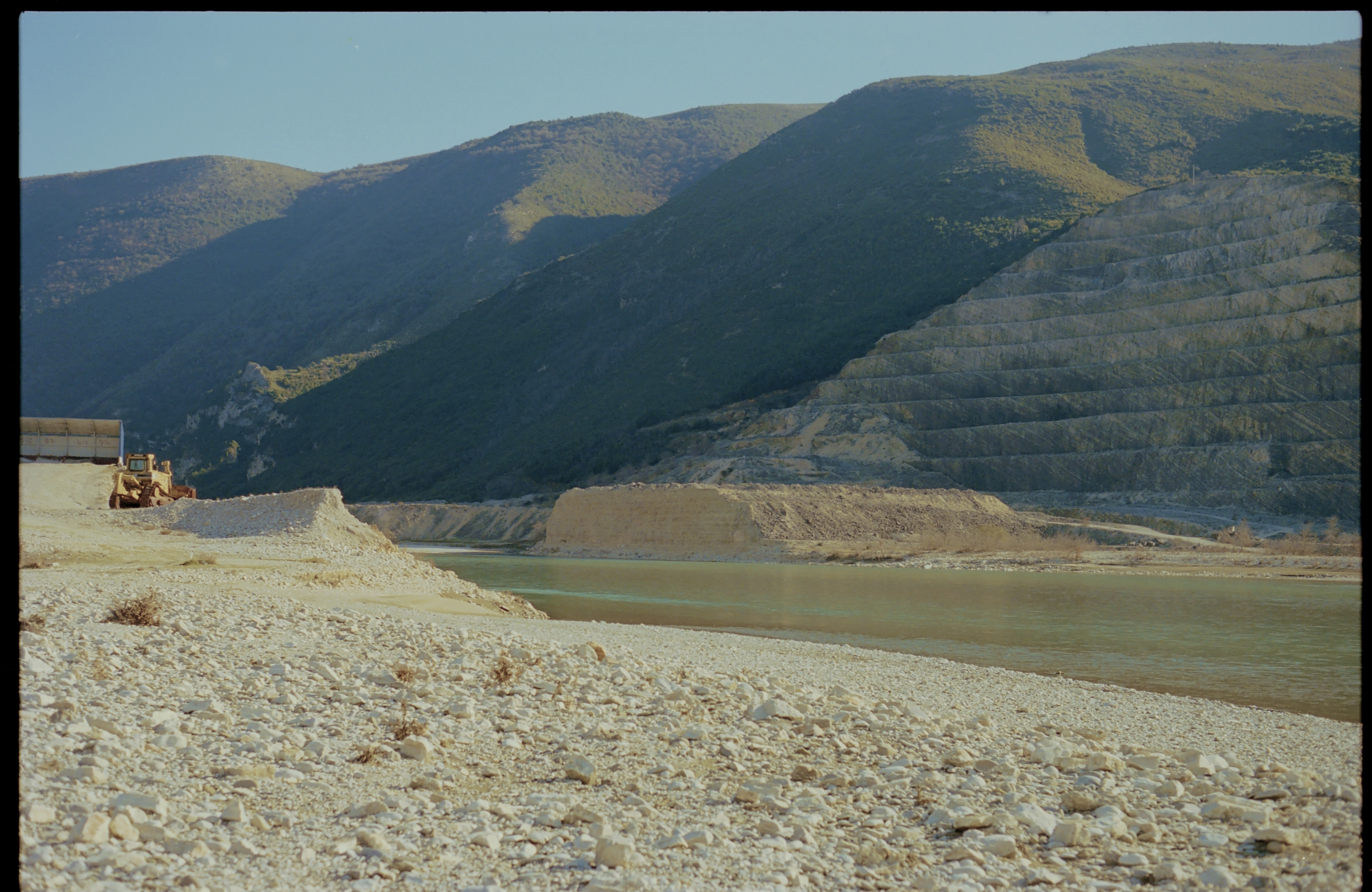 Duke vazhduar në drejtim të rrymës, hymë në seksionin e mesëm të lumit, ku zhvendosja e banesave me zhavorr u hapin udhë një numri kanionesh të ngushta dhe ngushtica të përshtatshme për ndërtim të digave. Kësaj pjese ia kanë mësyrë ndërtuesit dhe në të ende shihet ndërtimi i ngecur i hidrocentralit të Kalivaçit. Anët malore të grithura janë tani sfondi i një turbine gjysmë të ndërtuar që rrethohet me pajisje ndërtimi që kanë mbetur në vend-punishte.