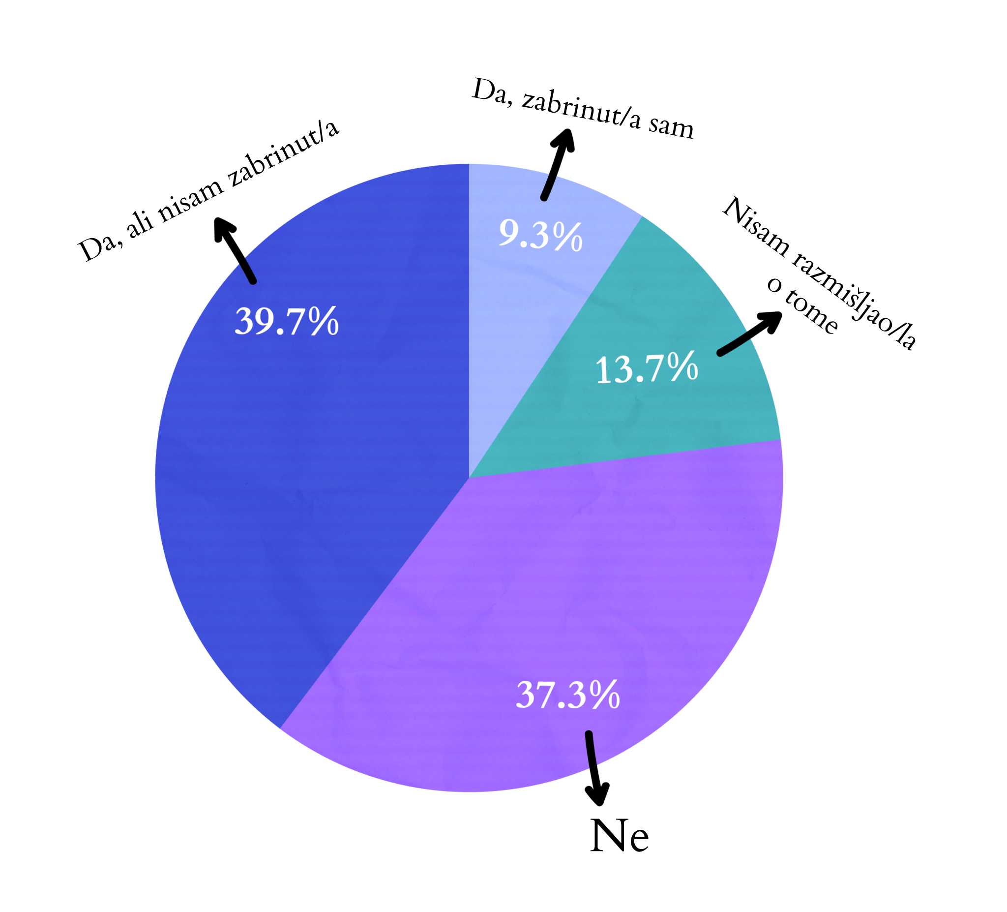 Ipak, ispitanici ostaju zabrinuti zbog određenih efekata korišćenja GenAI platformi. Pominju zavisnost, pasivnost i pad kreativnosti, plagijarizam i neoriginalan rad, kao i gubitak ličnih veština ukoliko se GenAI alati koriste prekomerno. Neki izražavaju posebnu zabrinutost u vezi sa privatnošću informacija i zaštitom ličnih podataka. Takođe se navode i problemi preteranog oslanjanja na AI platforme, greške i nizak kvalitet automatski generisanih materijala.