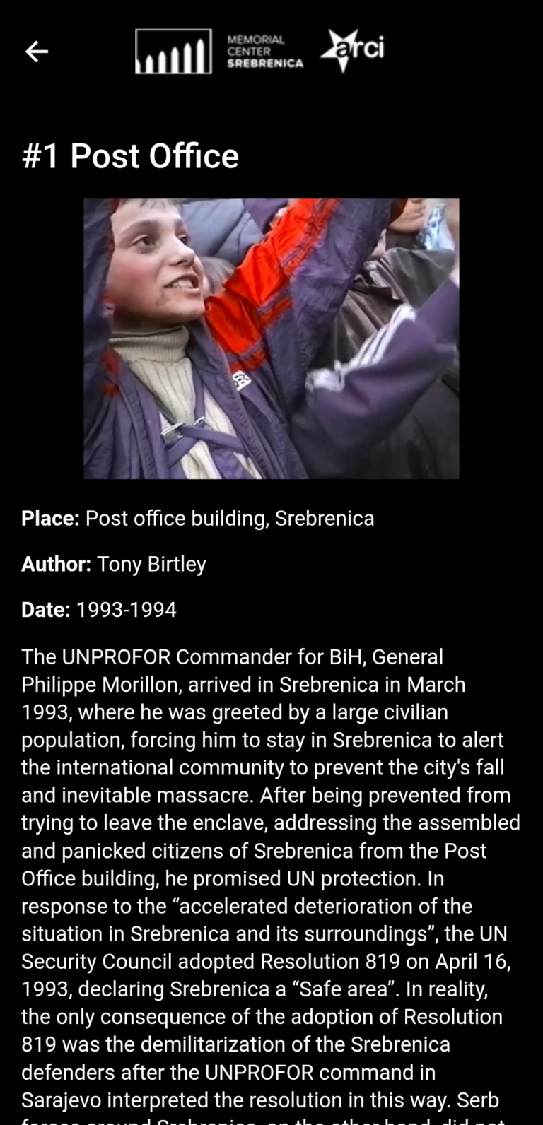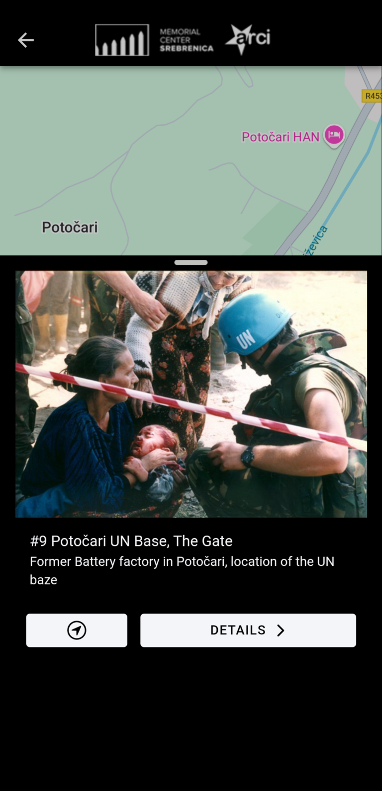 Da, pokušali smo to. To je bila ideja koju smo podelili sa Memorijalnim centrom i oni su bili zaista srećni što imaju mogućnost da prošire prostor sećanja u digitalnu sferu. Aplikacija proširuje i virtuelni i fizički prostor Memorijalnog centra, jer sada obuhvata i sam grad Srebrenicu, kao i lokacije masovnih zločina u okolnim planinama.