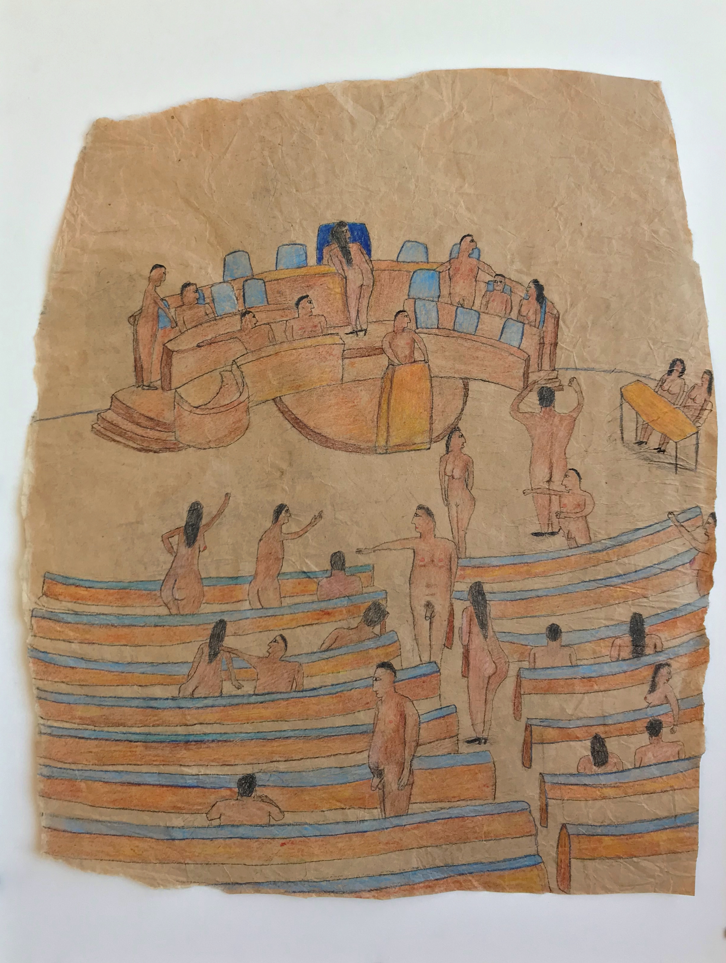 Artan Hajrullahu: Pokušavao sam smisliti nešto monumentalno pa nakon toga preći na minimalno. Ako počnete crtati na komadu papira ili u svesci, ne možete se prebaciti na nešto drugo. Bio sam — tako da kažem — prisiljen da oblikujem reciklirane [odbačene] materijale i stvorim prostor za crtanje, neki minimalan prostor. To mi je dalo priliku da razmišljam, odnosno primoralo me da razmišljam šta dalje.