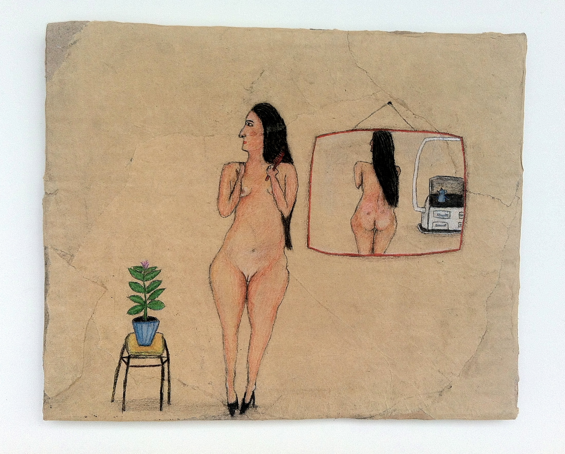 Ne možemo zaboraviti ogledalo koje je također prisutno u vašim crtežima i slikama. Pojavljuje se često, gotovo koliko i peć na drva, a većina ljudskih figura u vašim crtežima negdje gleda u njega. Zašto?