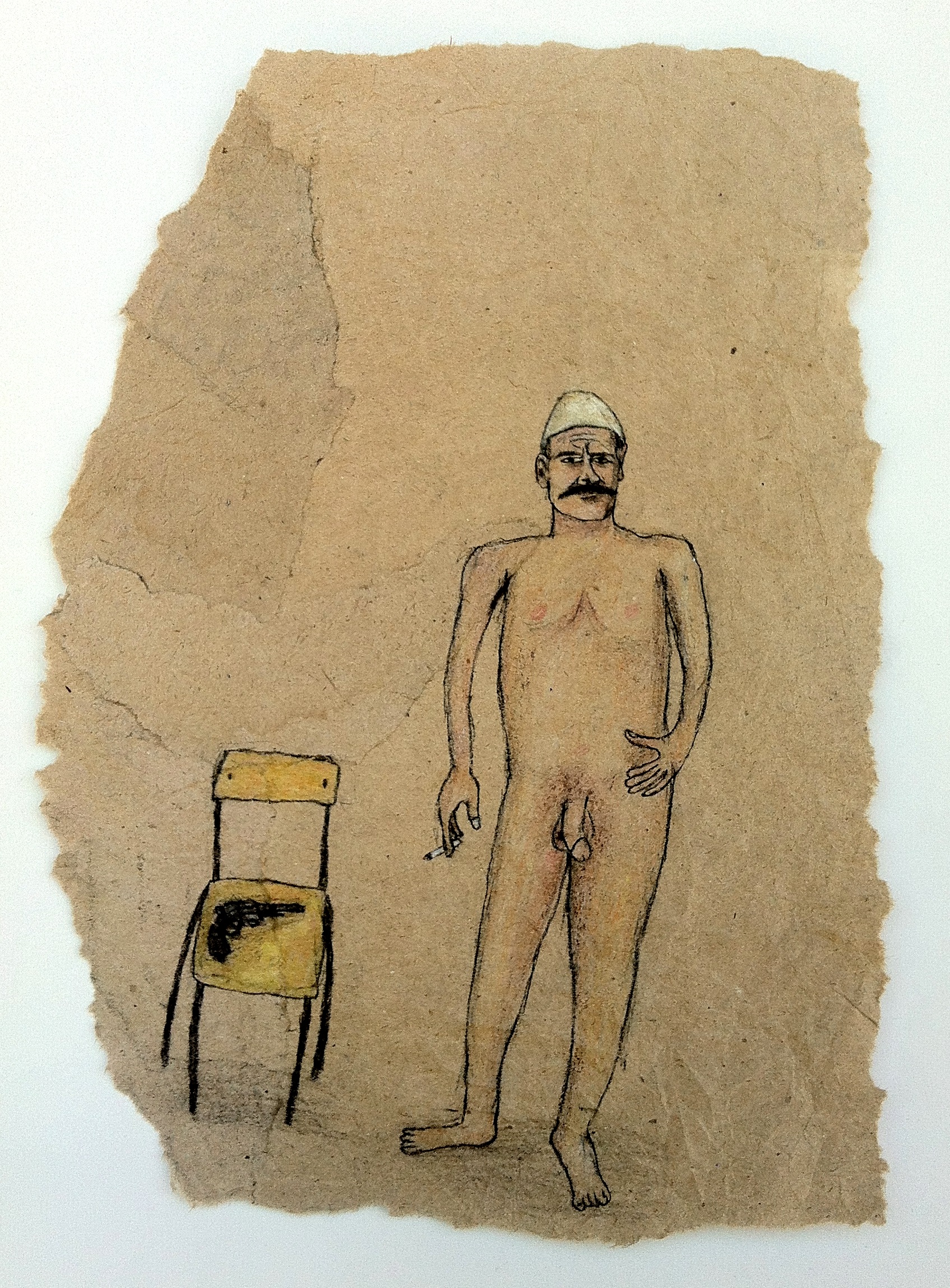 Vaši radovi sadržajem nisu “glamurozni”, što me prije svega podsjeća na to kako ste prikazali Migjenija [Millosh Gjerj Nikolla poznat kao MIgjeni, jedna od najutjecajnijih albanskih pisaca 20. Vijeka] Naime, pjesnika ste nacrtali na komadu kartona: nag je, malog penisa i stoji pored šporeta. Niste ga stavili u neku “napoleonsku pozu”.