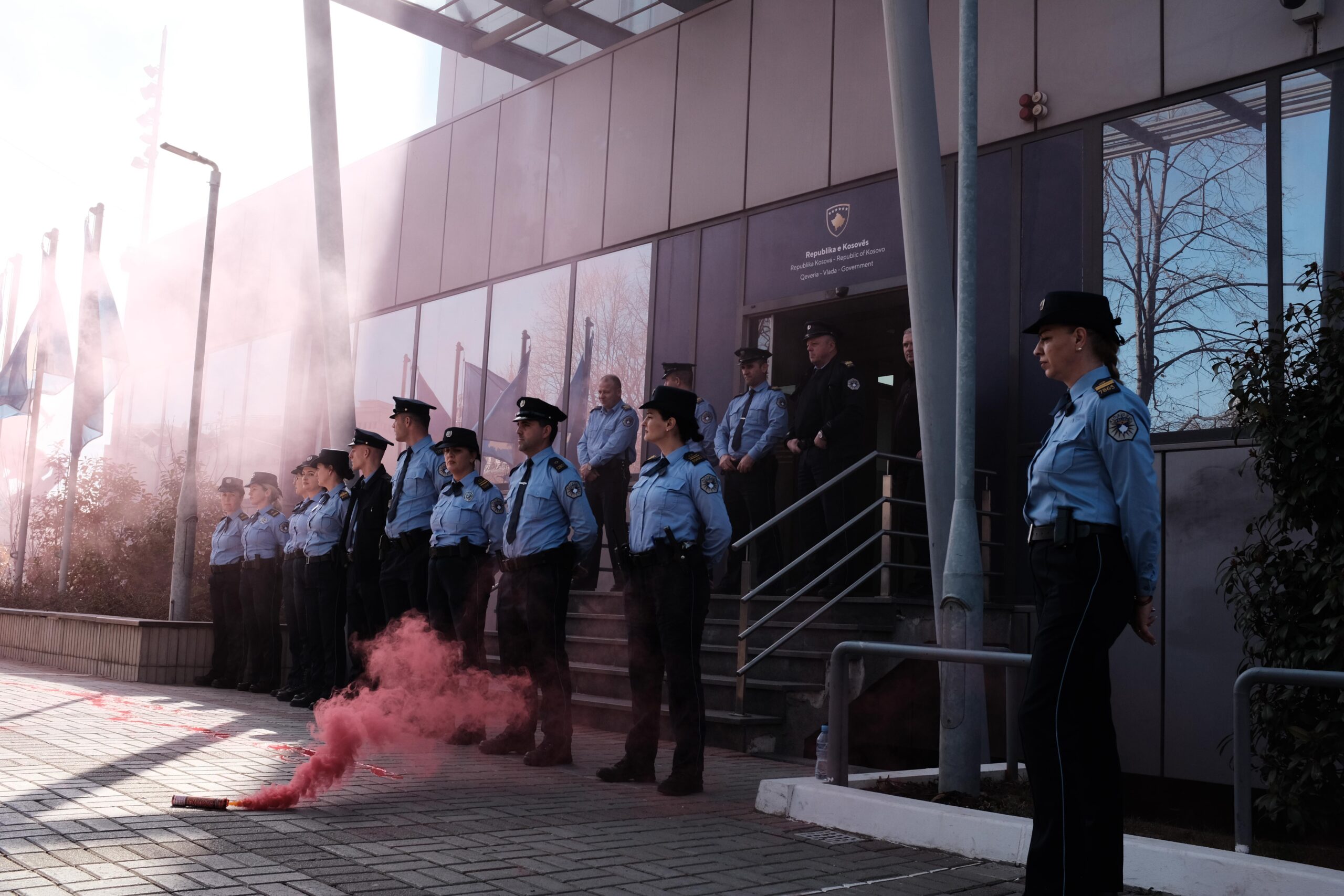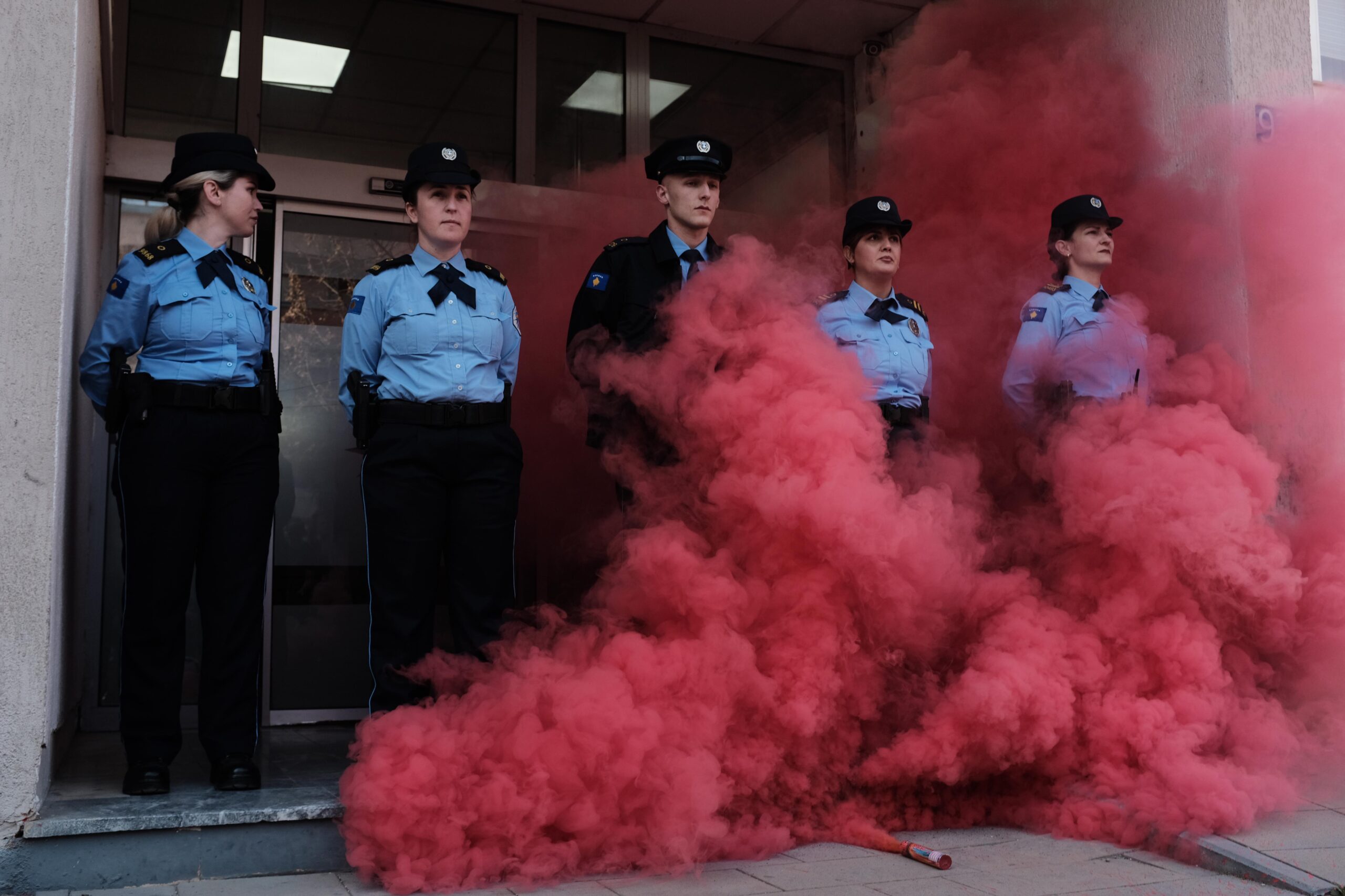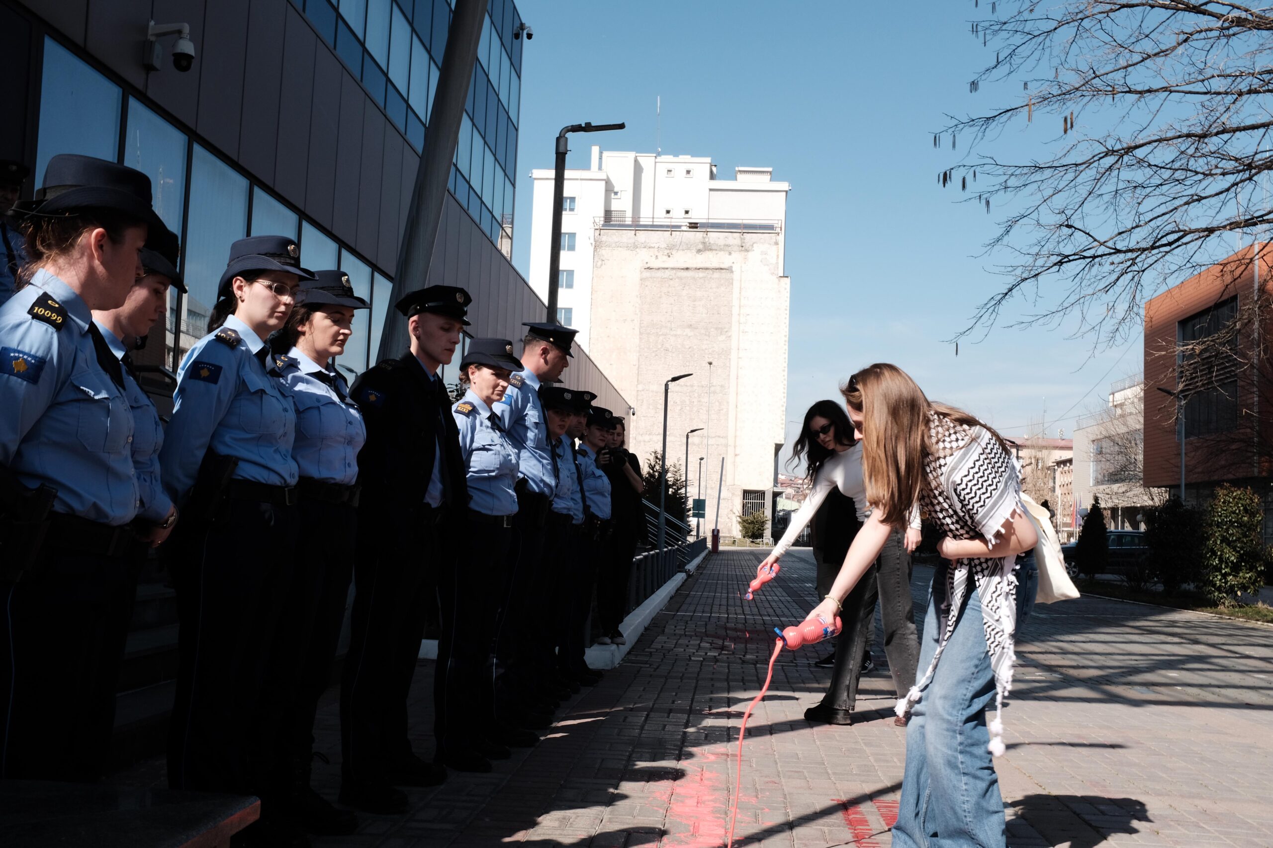 Kod jedne od glavnih policijskih stanica u Prištini, demonstrantkinje i demonstranti bacili su crvenu boju i dimne baklje — upečatljive simbole krvi ubijenih žena i poziv policiji na snažniju mobilizaciju u zaštiti žena. Policija Kosova je više puta zakazala u sprečavanju femicida, kao u slučajevima Sebahate Morine 2021. i Hamide Magashi 2022. godine, zbog nesprovođenja sudskih odluka i neadekvatnog odgovora na pozive žrtava za zaštitu.