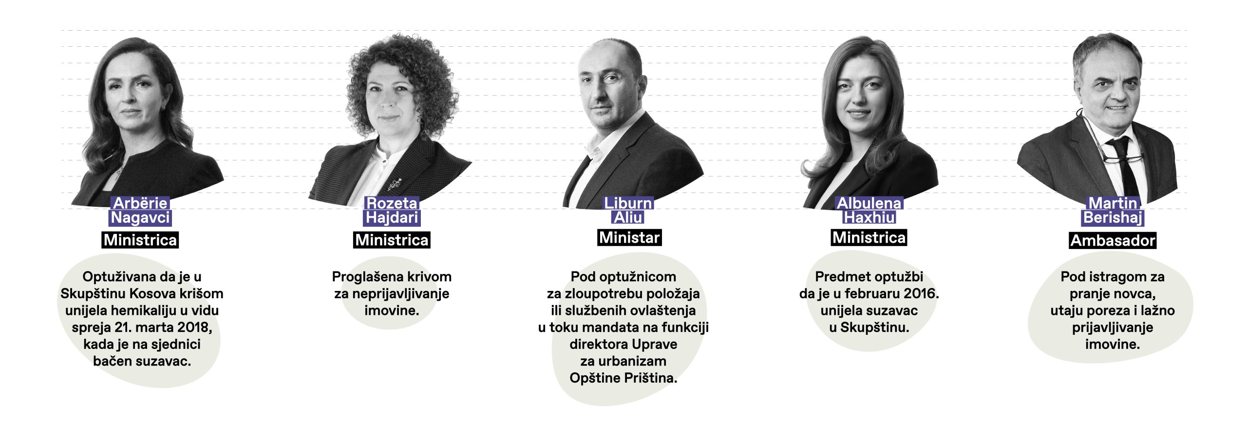 Međutim, vlasti u pogledu pravde očigledno imaju drugačije aršine kada je riječ o državnim službenicima_ama — pojedinim dužnosnicima_ama Kurtijeve vlade ili se trenutno sudi ili su im već izricane presude za krivična djela.