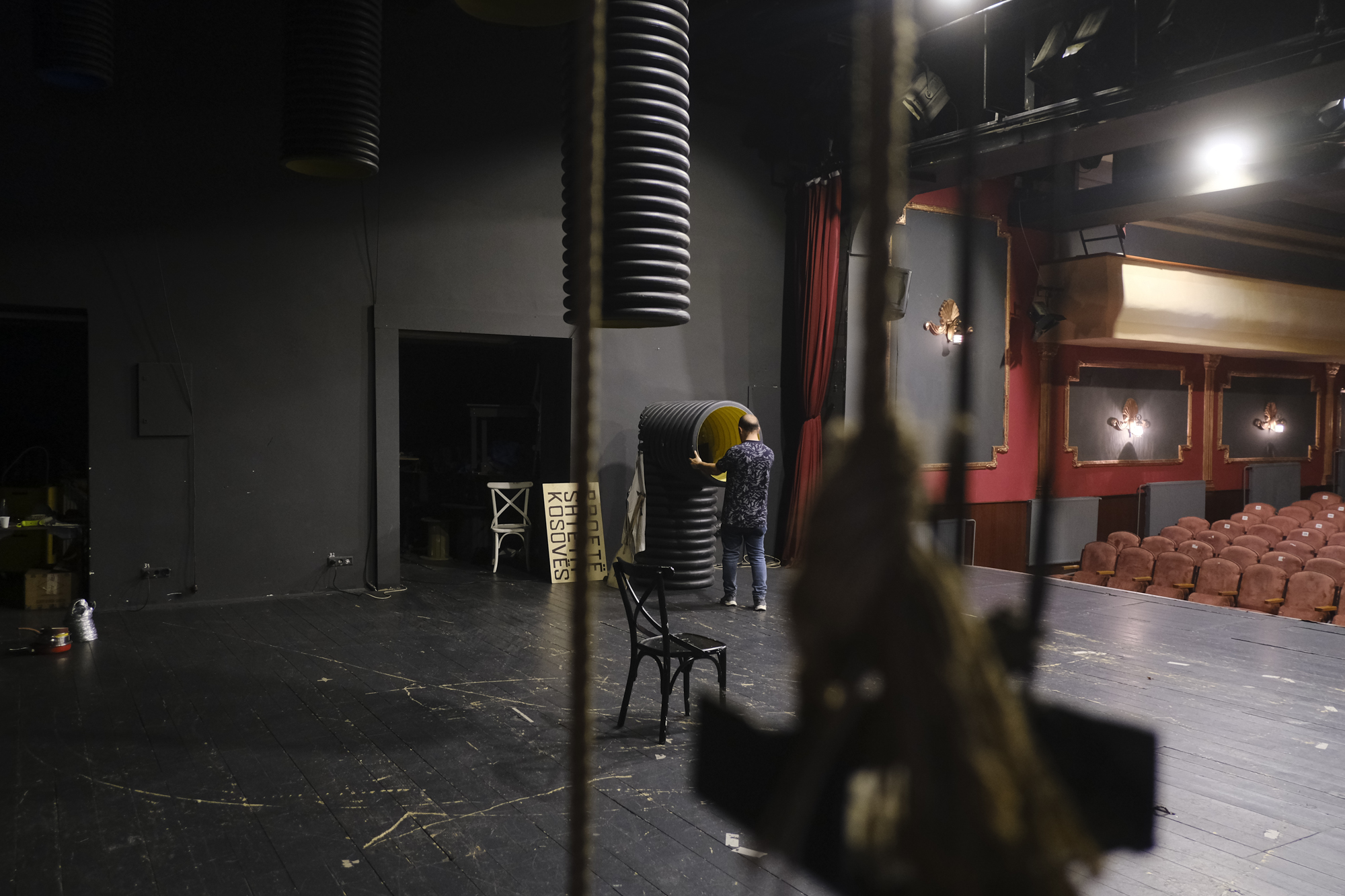 “Plan za renoviranje je izrađen dva-tri puta, ali nikad nije realizovan. Vidite da se pojavljuje u budžetima Ministarstva kulture, ali onda se novac prebaci negdje drugdje. Niko ne zna šta se desi — obnova ne bude obavljena”, rekao je Ugzmajli. Možda je otkazan i plan za renoviranje garderobe. Prostorija za presvlačenje je improvizovana i tamo su se glumci_ice — neki stojeći, a neki sjedeći na oštećenim kaučima — pripremali za predstavu “Švicarski marksisti i lenjinisti”.