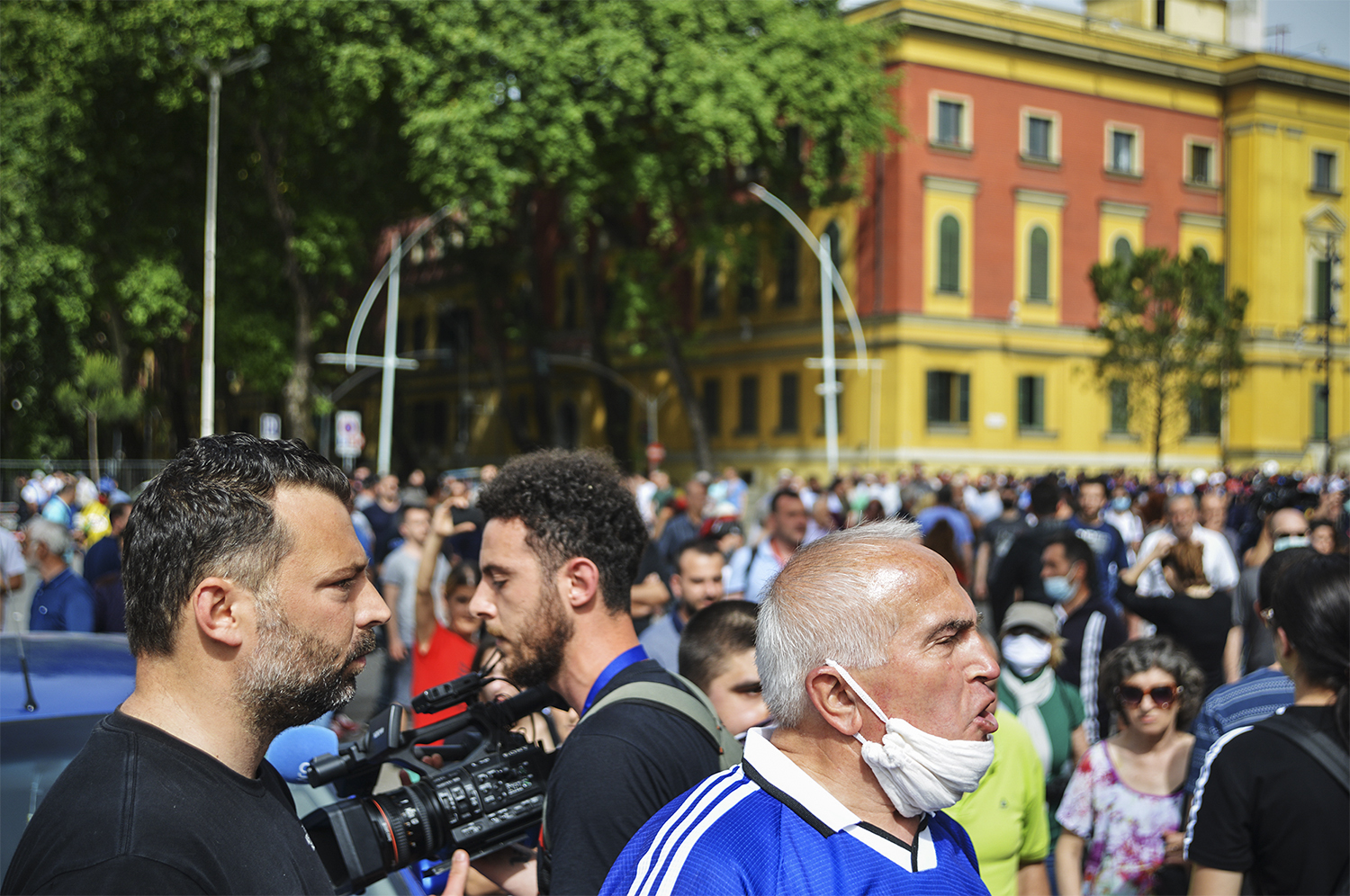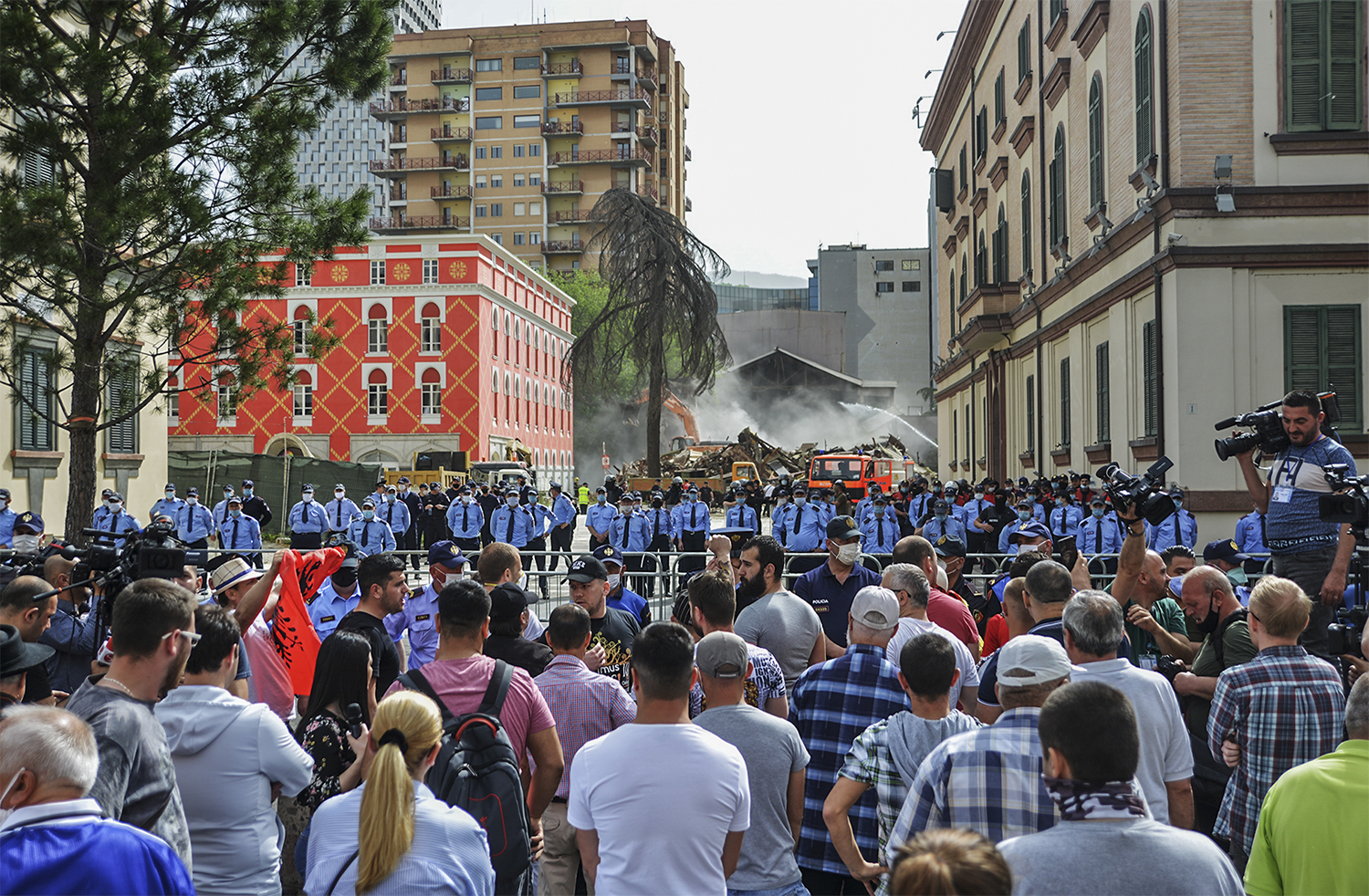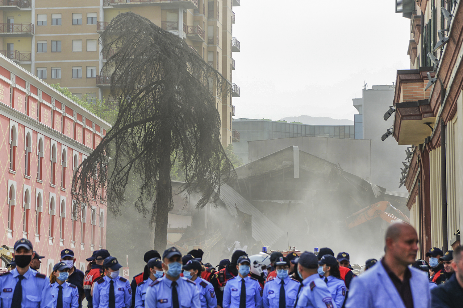 Jutros me je zatekla vijest da ruše Narodno pozorište u Tirani. Vidjela sam kako apsurdan broj policajaca izvlači aktiviste/ice koji su se tome usprotivili. Samo što nisam povratila. Uzela sam kameru i odmah se zaputila na lice mjesta. Prvi put u životu nisam mogla slikati kako treba. Toliko sam plakala dok sam gledala te mučne scene; bager je rušio građevinu koja je za nas bila simbol otpora i slobode govora.