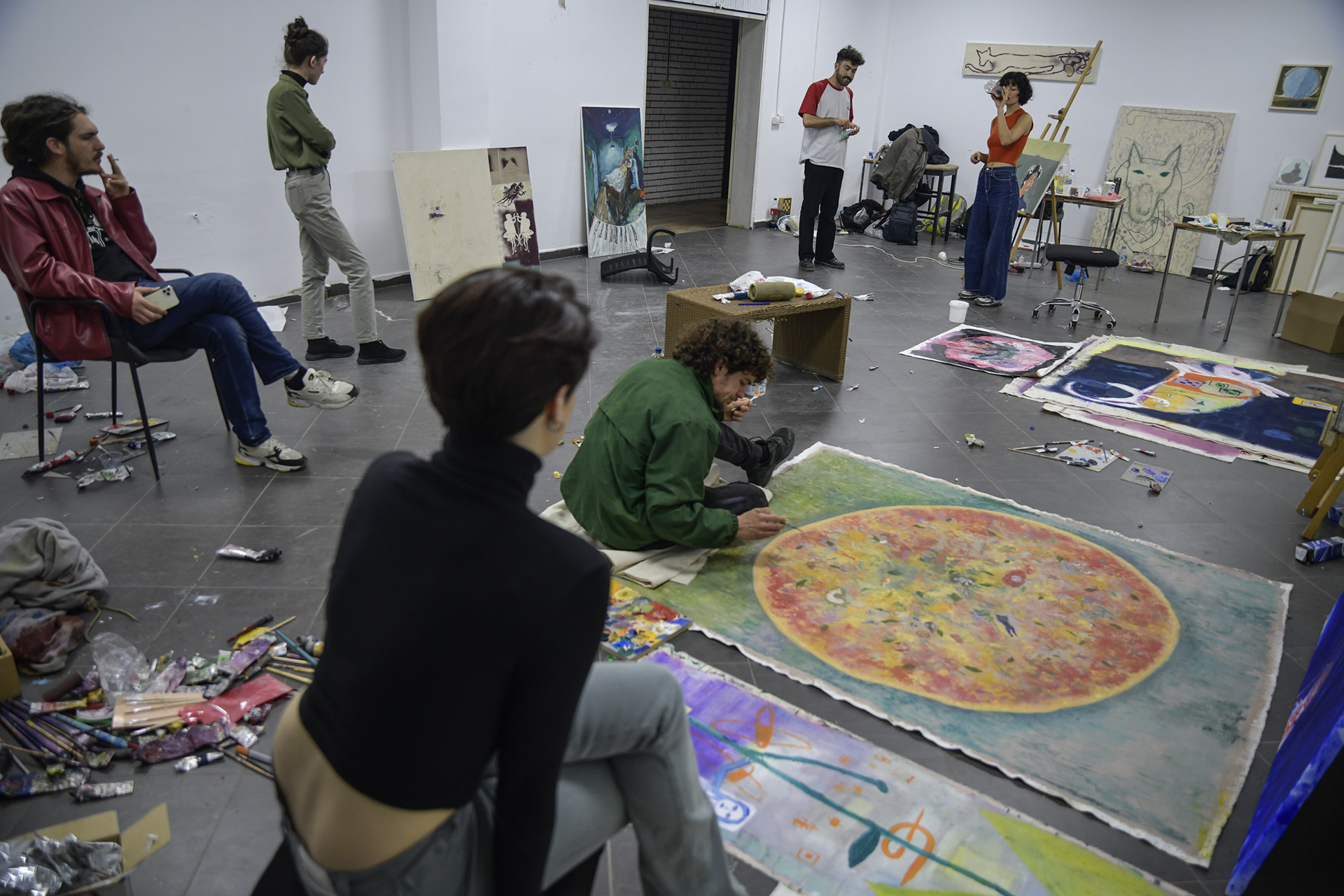 Pre nekoliko meseci, prostor u kom je danas smešten umetnički studio bio je tek jedan od brojnih upražnjenih prostorija u Palati. “Ne biste prepoznali ovaj prostor kada biste ga uporedili sa onim kako je nekad izgledao”, kaže Arbnor Karaliti, slikar i član kolektiva mladih vizuelnih umetnika koji su početkom ove godine preobrazili prostor u secište alternativne, eksperimentalne umetnosti.