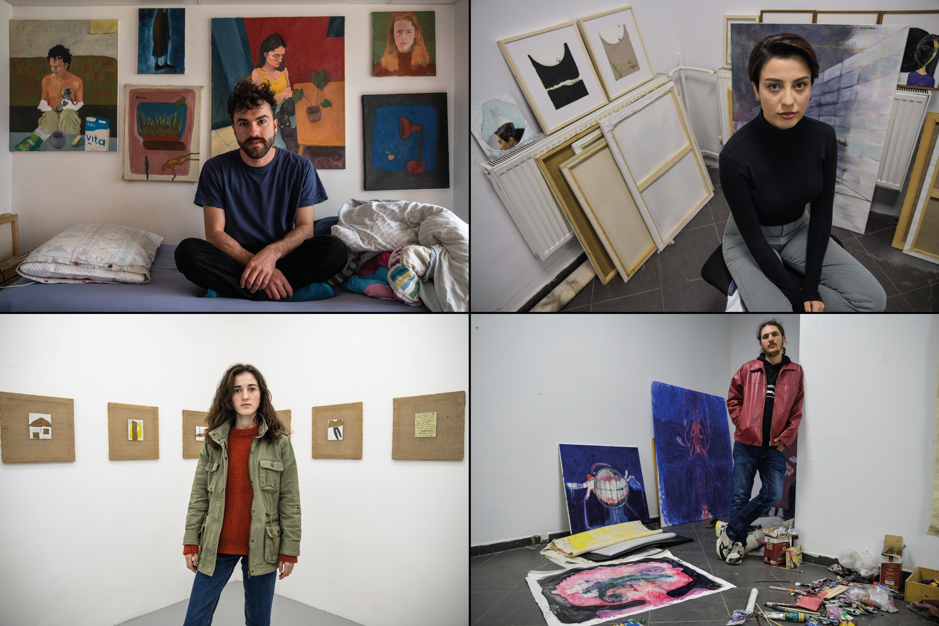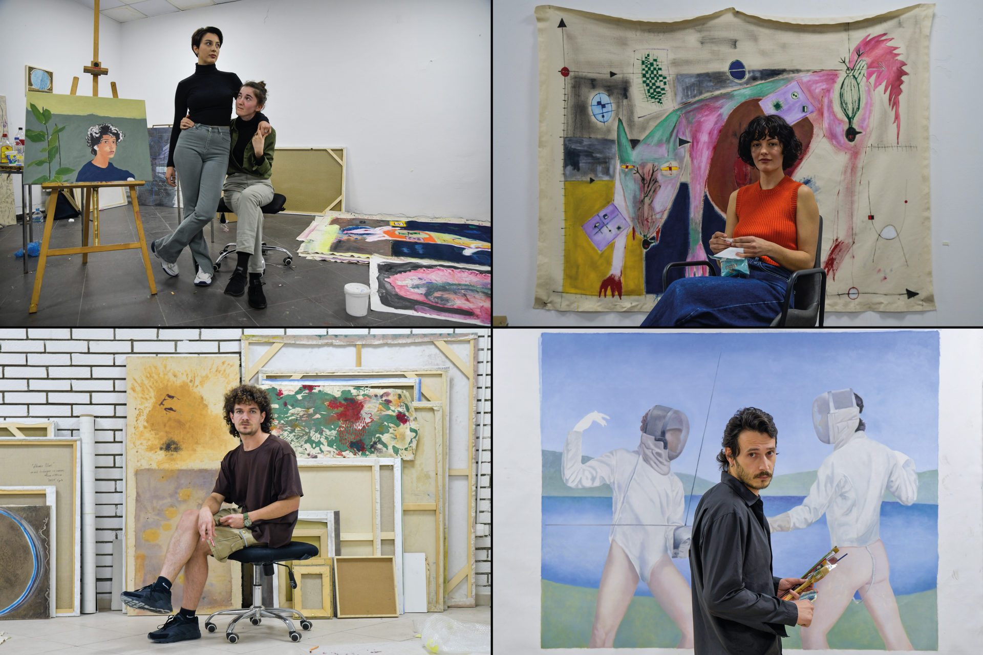 U smeru kazaljke na satu odozgo sleva: Arbnor Karaliti, Lumturie Krasniqi, Brilant Milazimi i Blerta Hashani. Mladi umetnici dele studijski prostor u kom podržavaju jedni druge. Fotografije: Ferdi Limani / K2.0