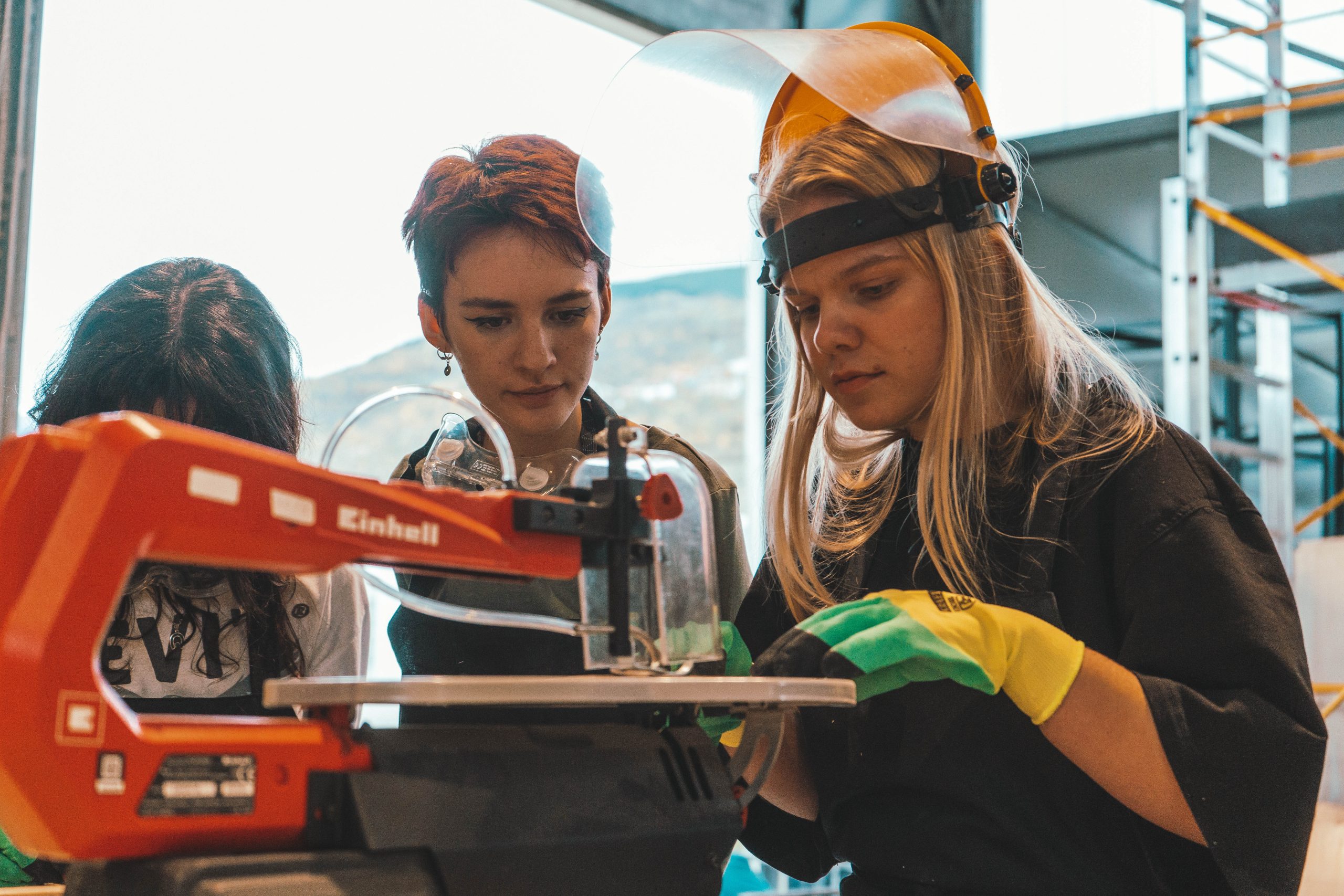 Nabavili su mašine, opremu za obradu drveta, metala i tekstila, kao i računare i kamere za medijski i komunikacijski program, i prionuli na posao. Zajedno su pravili sve — od ormara i stolova do kuhinje, sve što je bilo potrebno za Hangar I, u dve faze. Polovina korišćenog materijala bila je reciklirana iz umetničkih radova s prethodnih edicija bijenala, koji su čuvani u malom skladištu u gradu.
