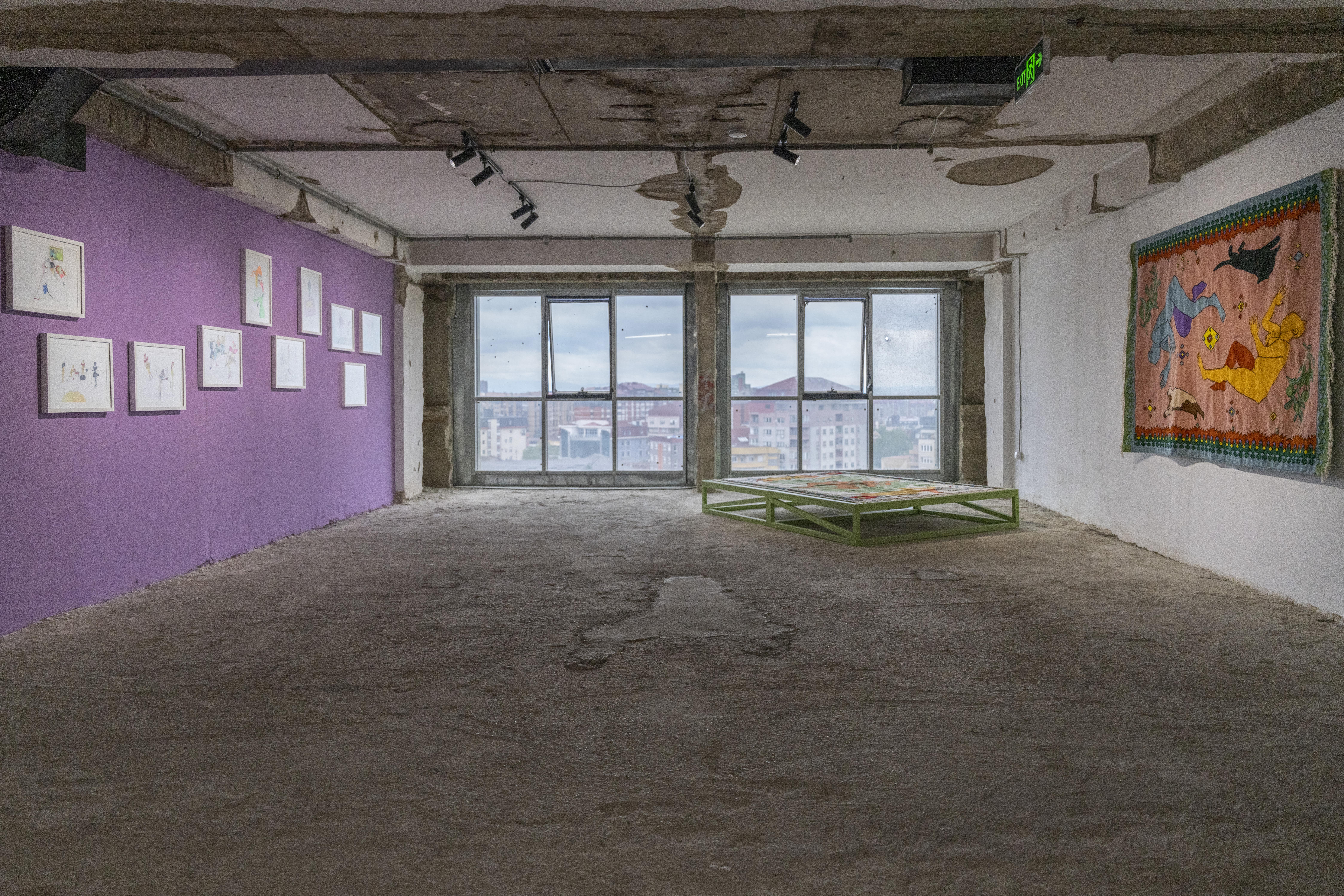 Prostor izložbe, koji obično karakterišu surovi betonski zidovi, transformisan je u prijatno okruženje sa prostorom za sedenje u centru. Ovaj prostor deluje kao mesto za građenje prijateljstava, okružen radovima koji, iako su fokusirani na kvir tematiku, bave se pitanjima nasleđa, tradicije, kolonijalizma, kvirfobičnog nasilja, bolesti i brisanja, između ostalog.