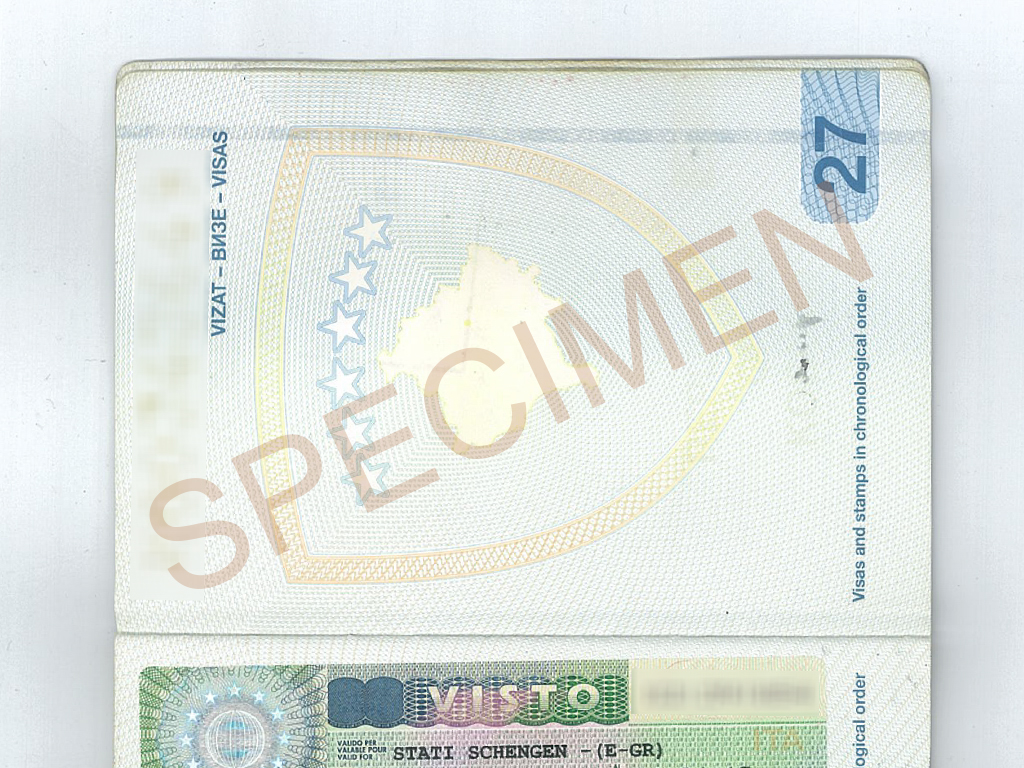 Građani Kosova koji često putuju u EU završavaju sa pasošima punim kratkoročnih viza. Ova fotografija prikazuje podatke o vizama za tri osobe sa Kosova. Svaki red predstavlja jednu kratkoročnu vizu.