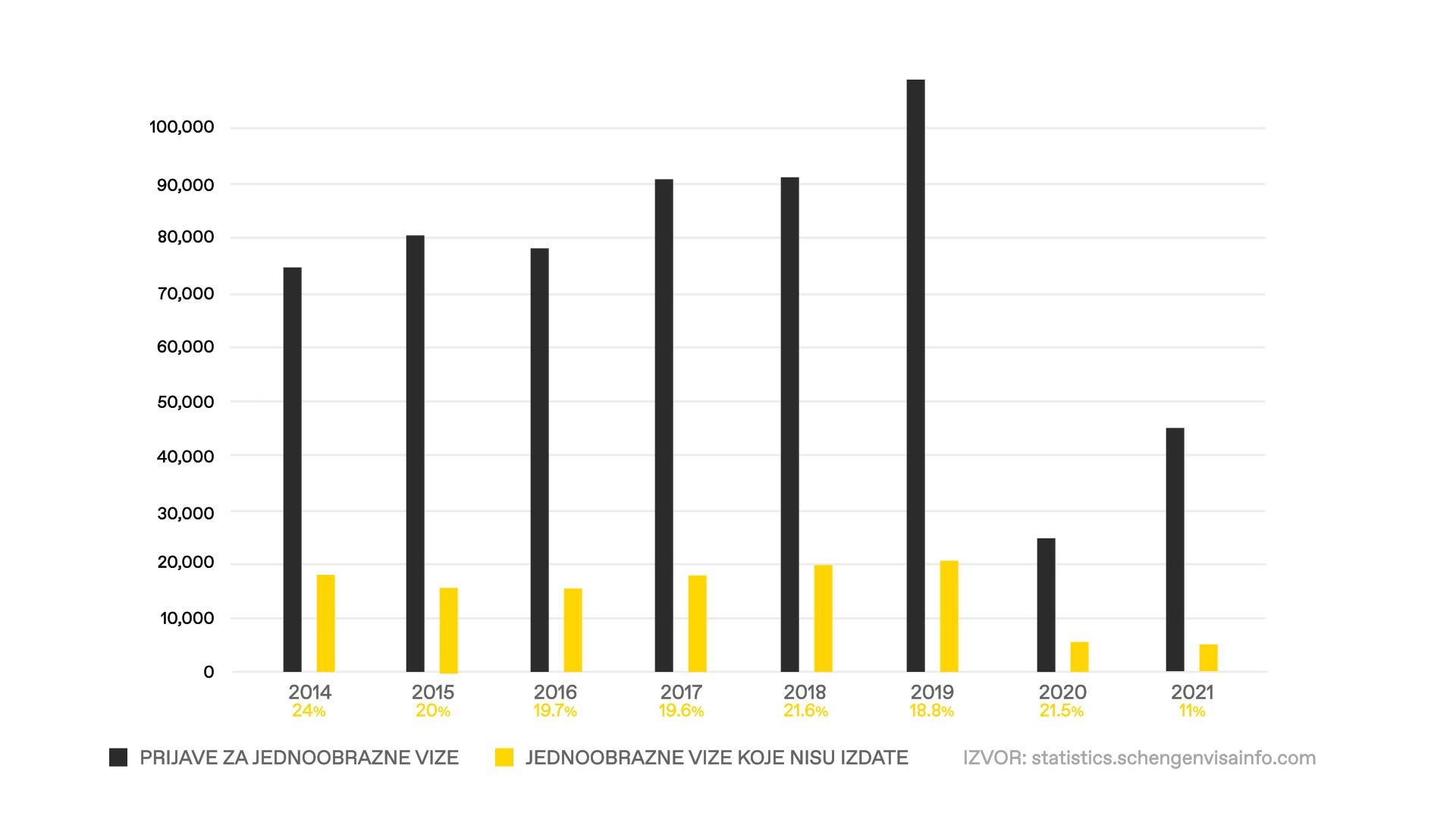 Između 2014. i 2021. godine, građani Kosova su podneli oko 600,000 aplikacija za šengenske vize. Ako računamo da jedna aplikacija košta 165 evra, za ovih osam godina građani Kosova su potrošili skoro 99 miliona evra u procesu apliciranja za kratkoročne vize. U pomenutom periodu odbijeno je oko 20% zahteva.