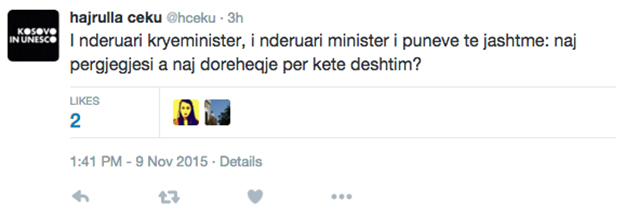 Pavarësisht përpjekjeve zyrtare për të shfaqur anët pozitive në këtë situatë, ministrat shumë shpejtë u përballën me thirrje për dorëheqje të tyre, për shkak të asaj që disa e shohin si dështim total të dhjetë muajve të diplomacisë. Hajrulla Çeku, drejtor i organizatës kulturore EC MA Ndryshe, që është veçanërisht aktive në sektorin e trashëgimisë kulturore, shkroi në Twitter: I nderuar Z. Ministër i Punëve të Jashtme: A ka përgjegjësi e dorëheqje për këtë dështim?”